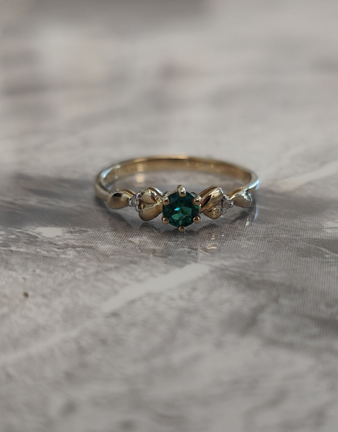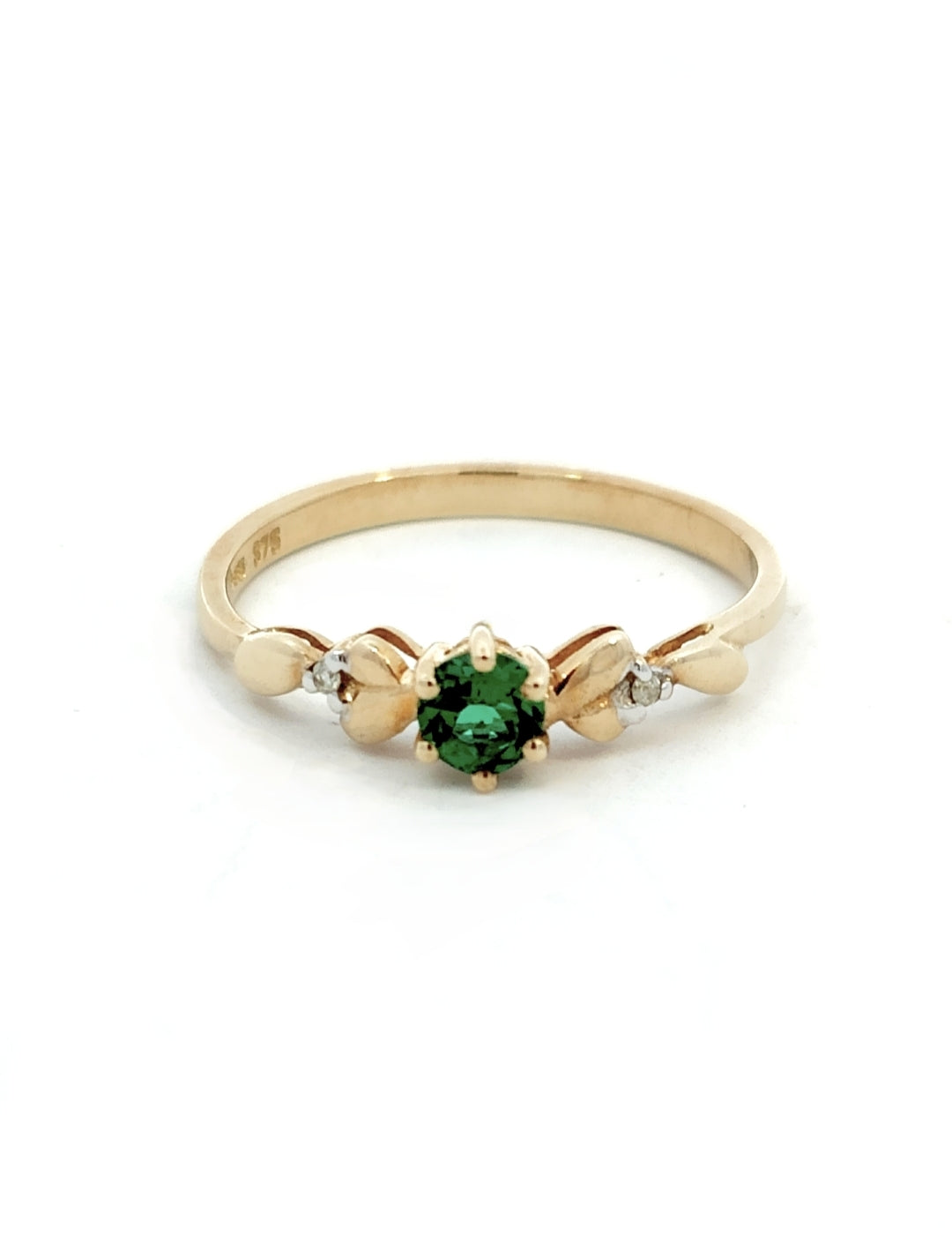 Crafted from luxurious 9ct Yellow gold, this captivating ring features a created emerald set in an enchanting pattern, enhanced by a sparkling diamond accent. Beyond their mesmerizing beauty, emeralds symbolize love, renewal, growth, and wisdom in many cultures. This gemstone embodies the essence of deep emotional connections, unwavering loyalty, and harmonious balance in relationships—making it the perfect meaningful adornment for those who appreciate both beauty and symbolism.