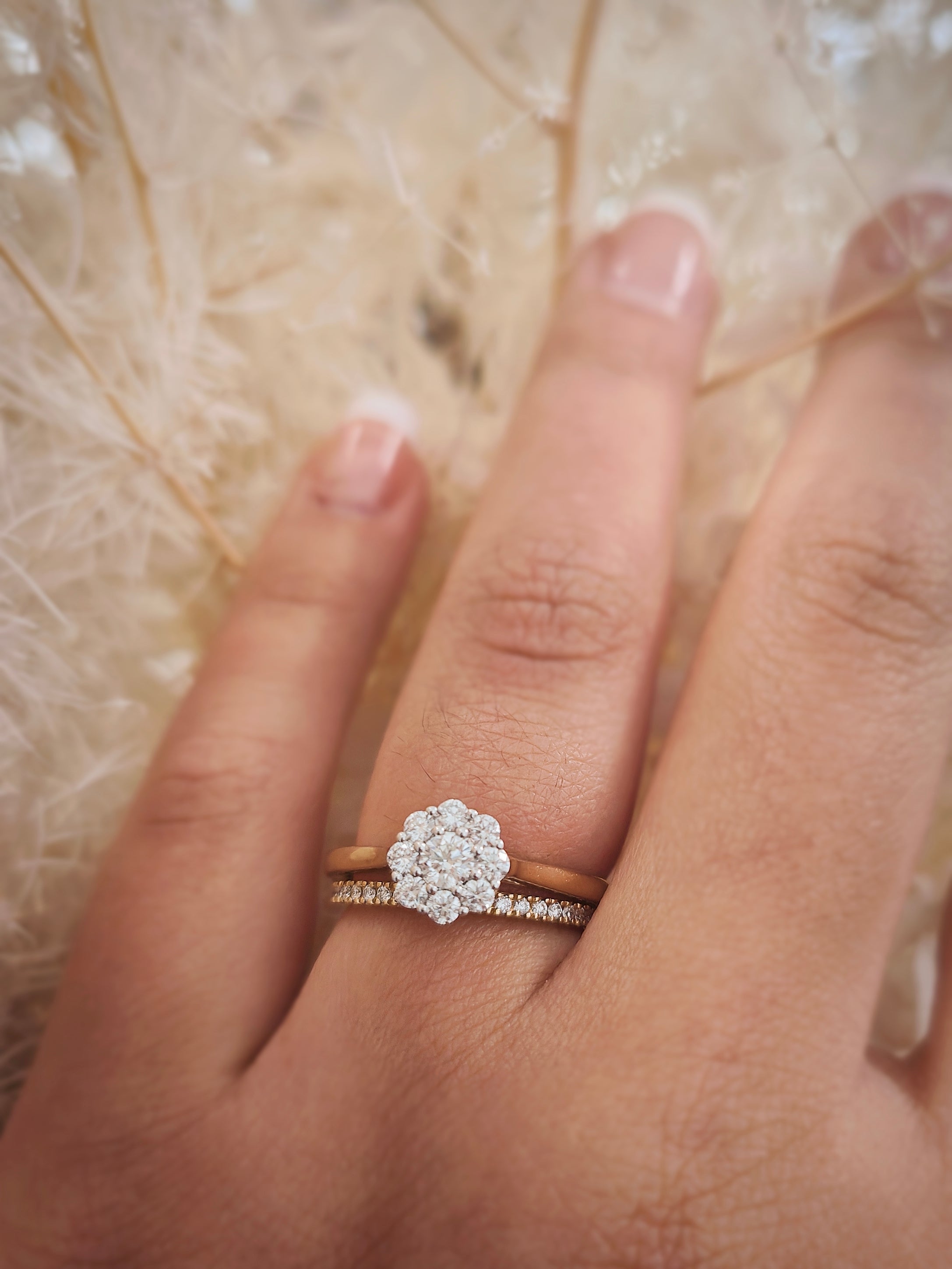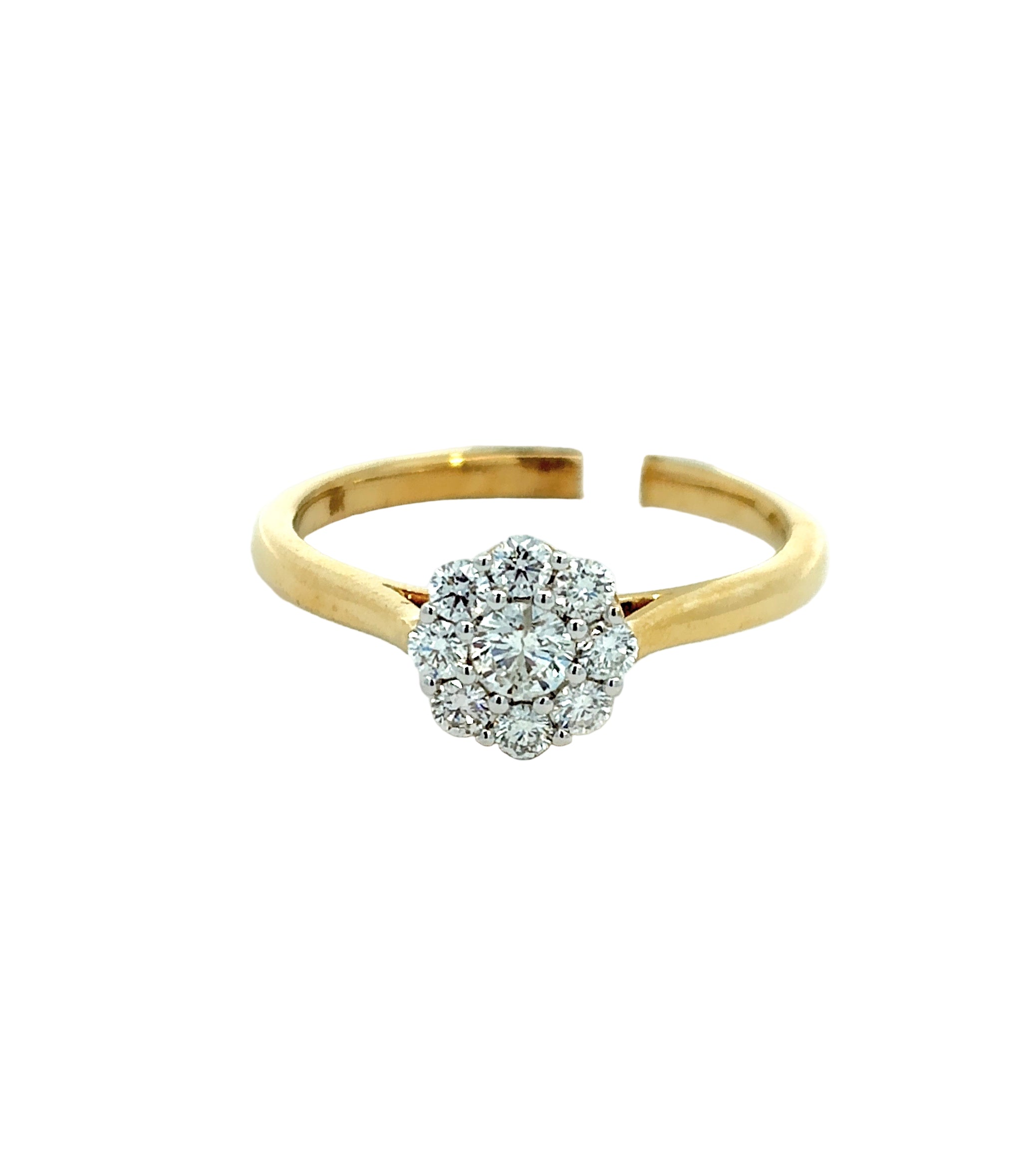 This elegant ring features a captivating cluster of diamonds, creating a dazzling floral-inspired design. Set in a sleek gold band, this piece offers a perfect blend of sparkle and modern simplicity.