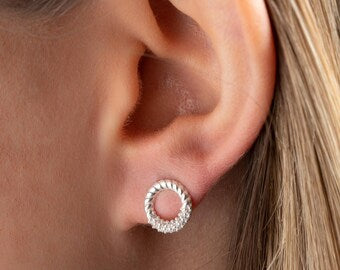 9ct White Gold Rope Circle Diamond Earrings
