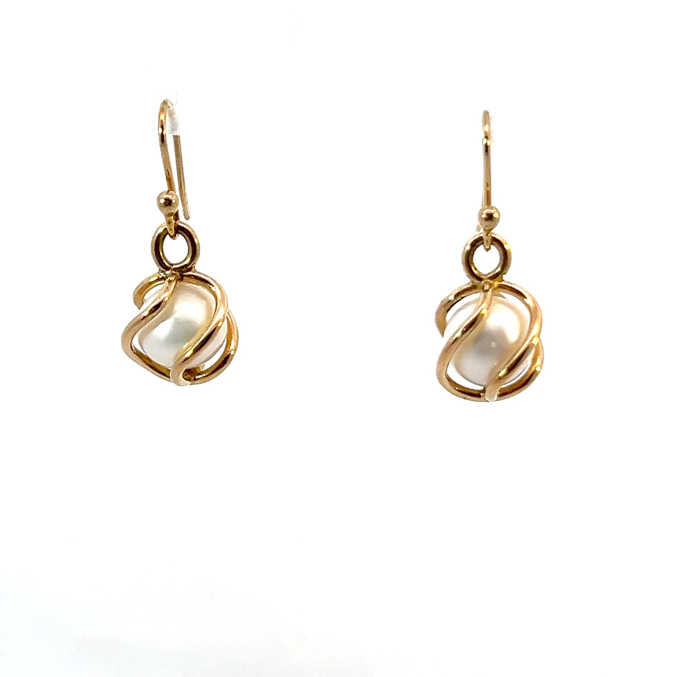 9ct Yellow Gold Caged Pearl Hook Earrings