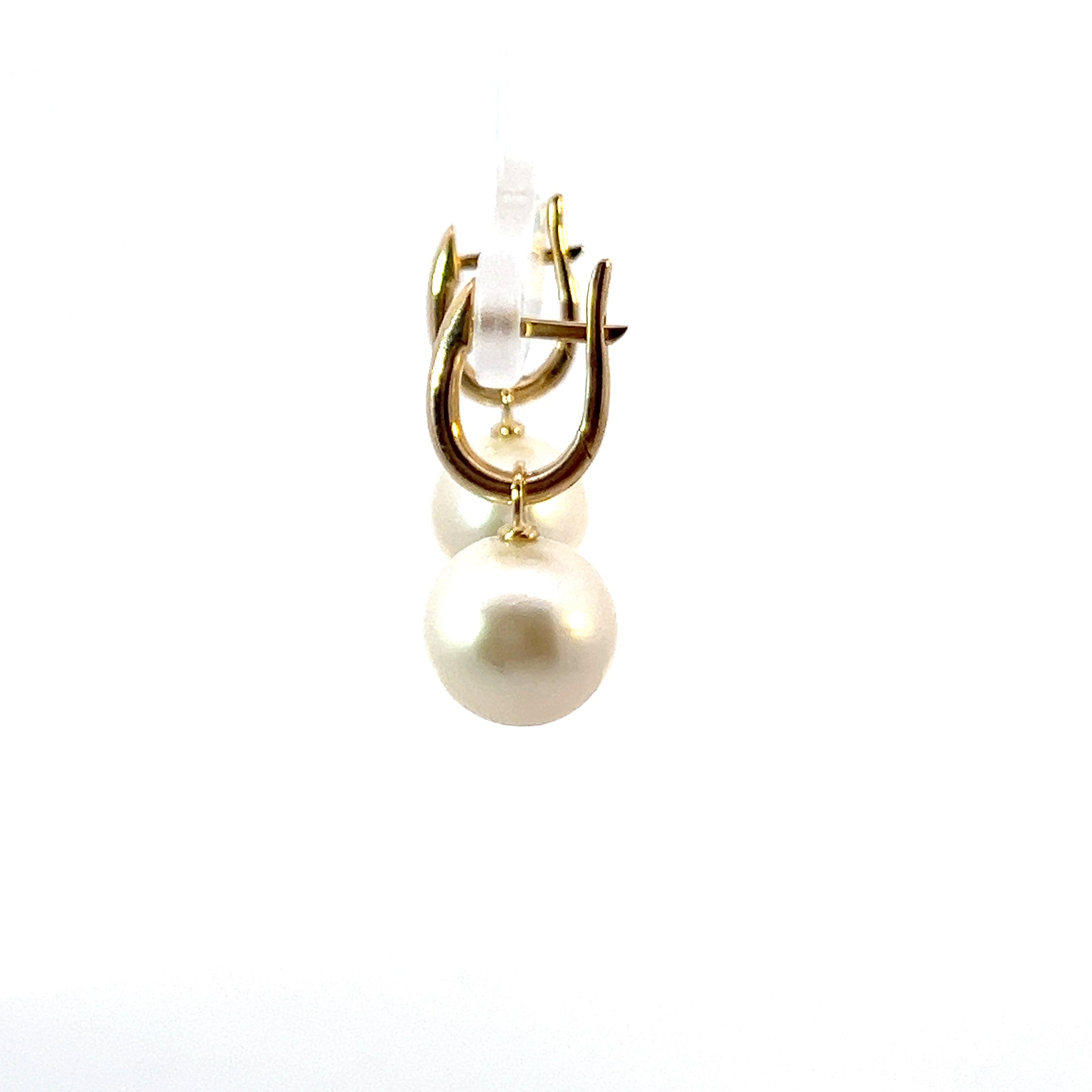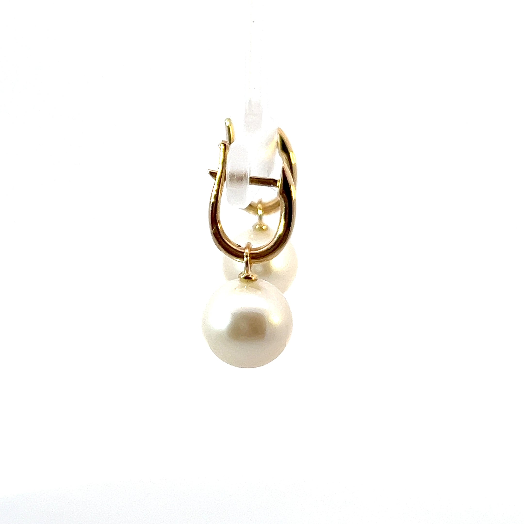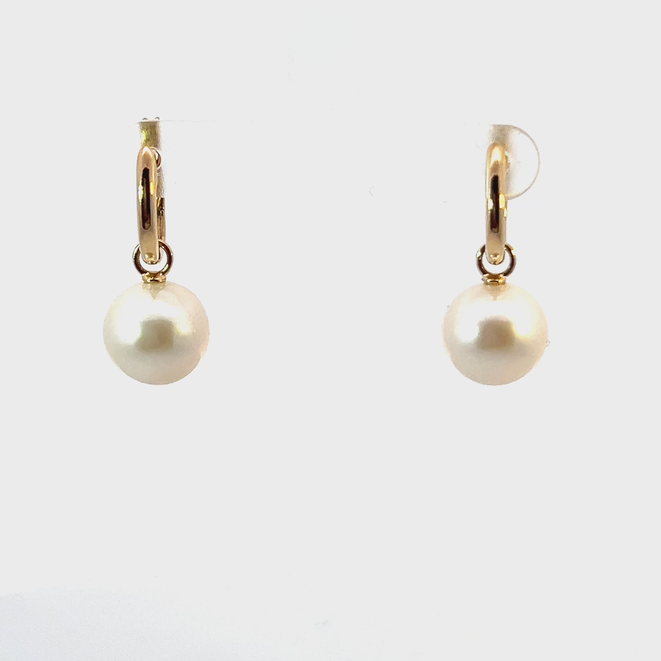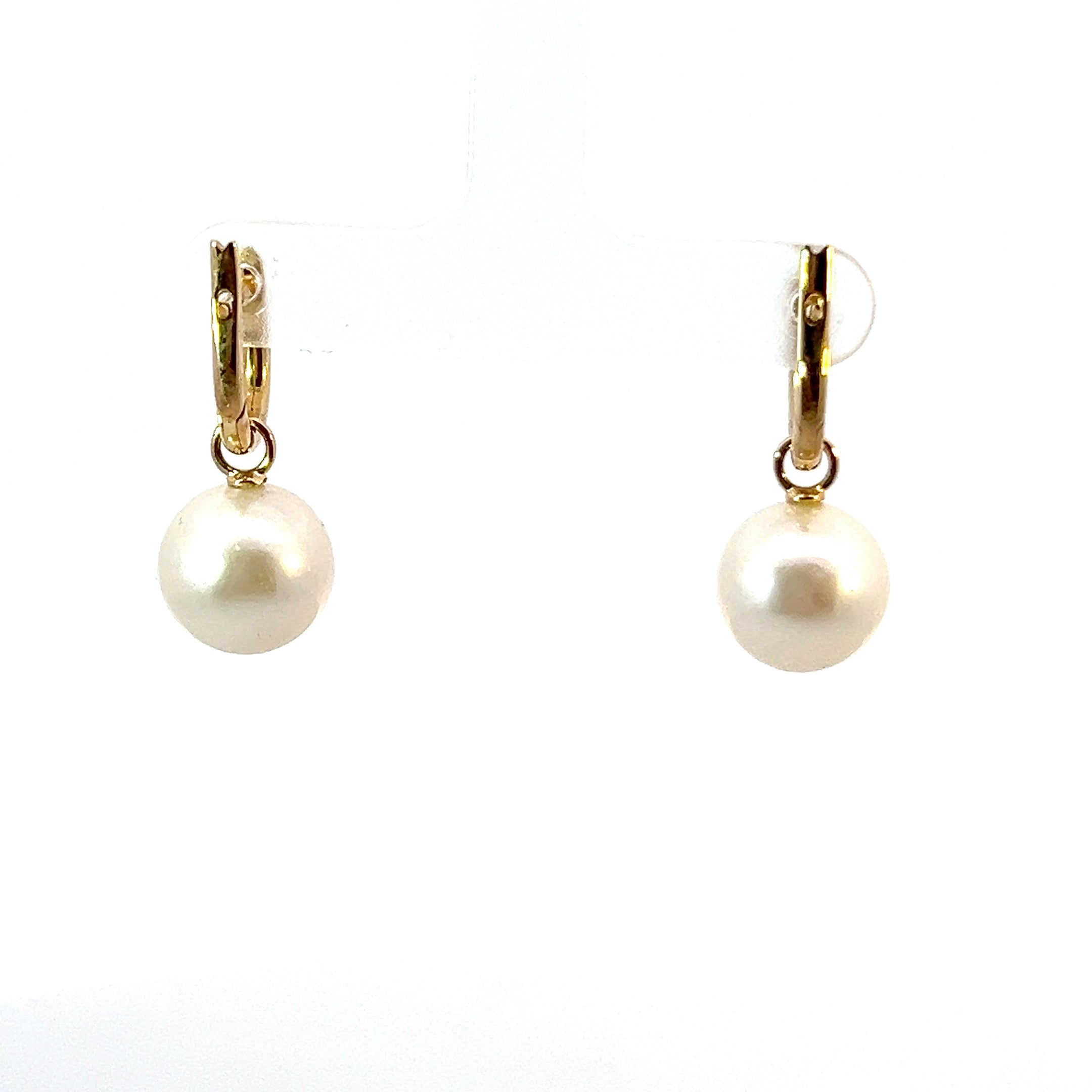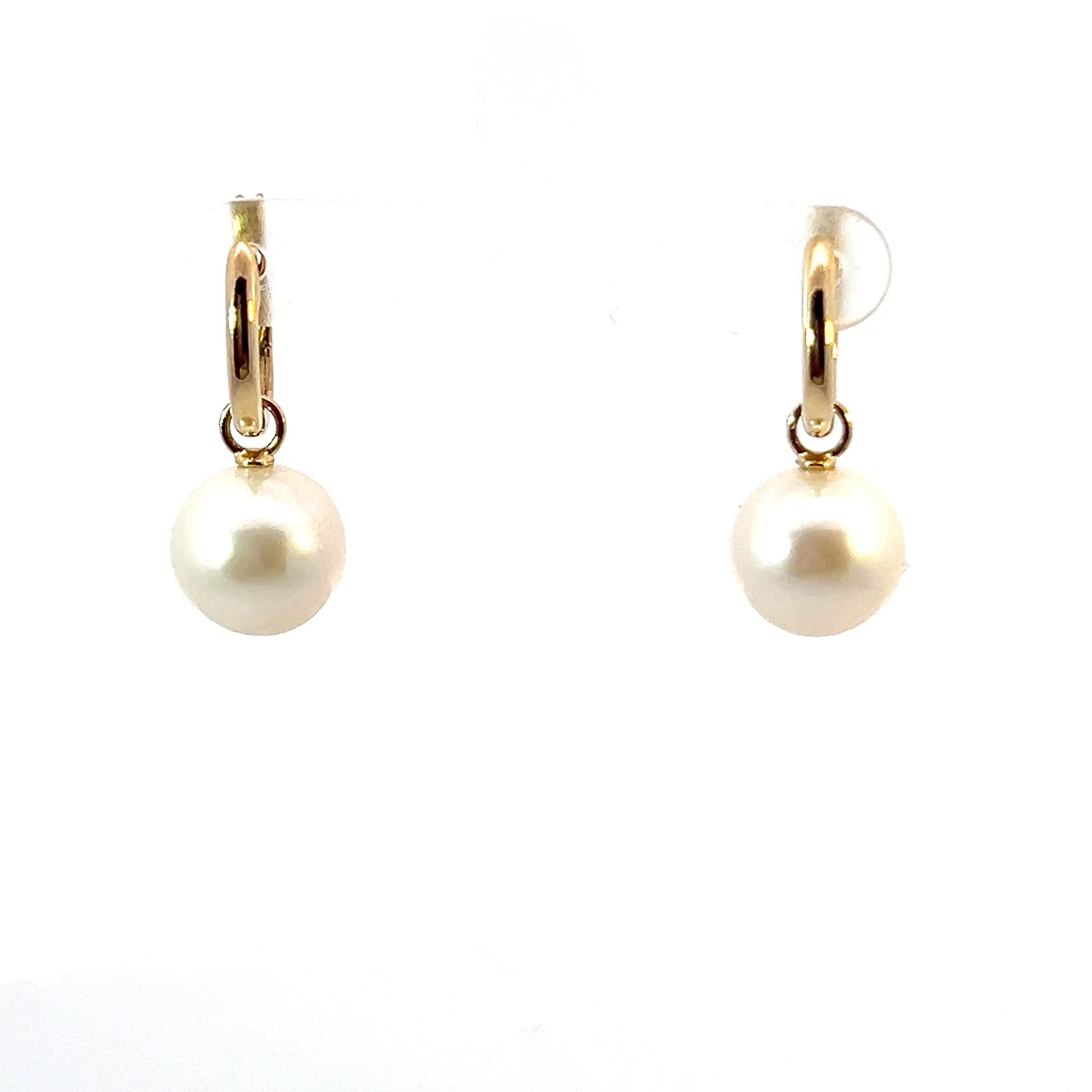 9ct Yellow Gold Simple Pearl Dangle Hoop Earrings