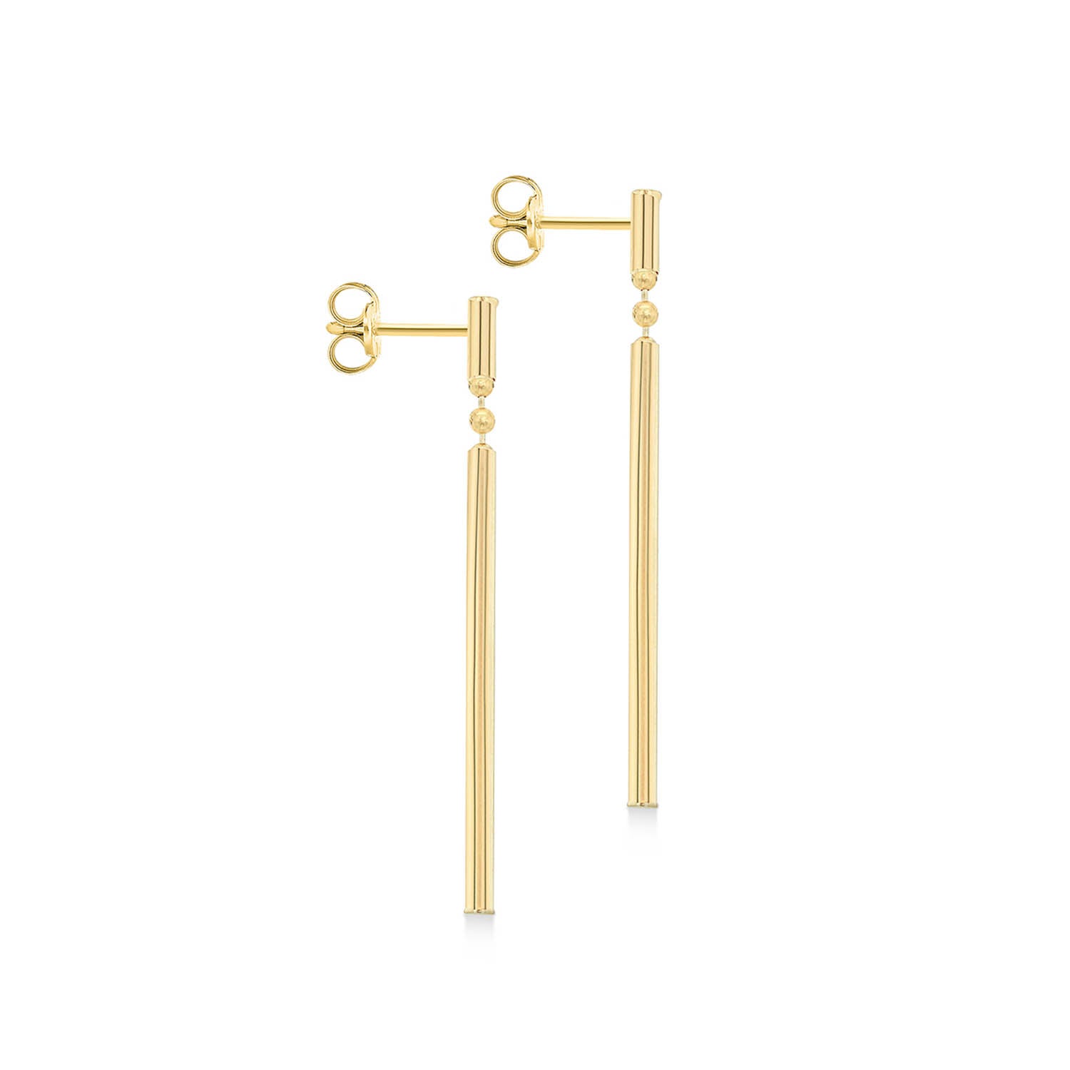 9K Yellow Gold Round Bar Drop Earrings 41mm