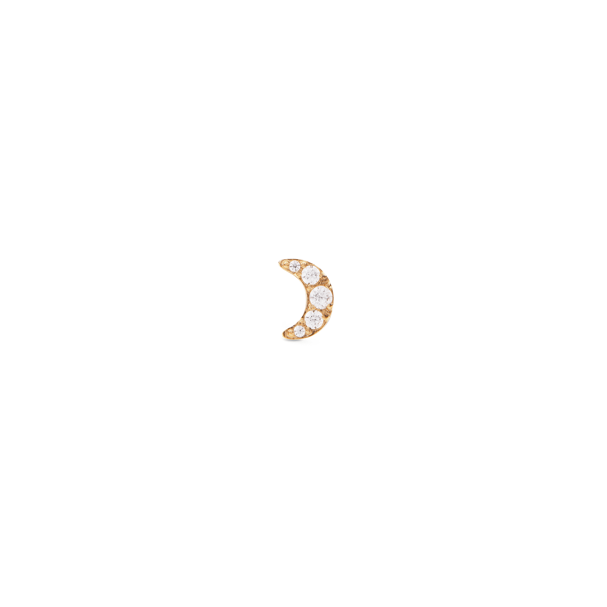 Experiment with different symbols and shapes—like these gold crystal moons—mix and match, and build a look that’s totally your own. To achieve perfectly clean edges, the crystals are placed and set with great care, in order to hide as much metal as possible.