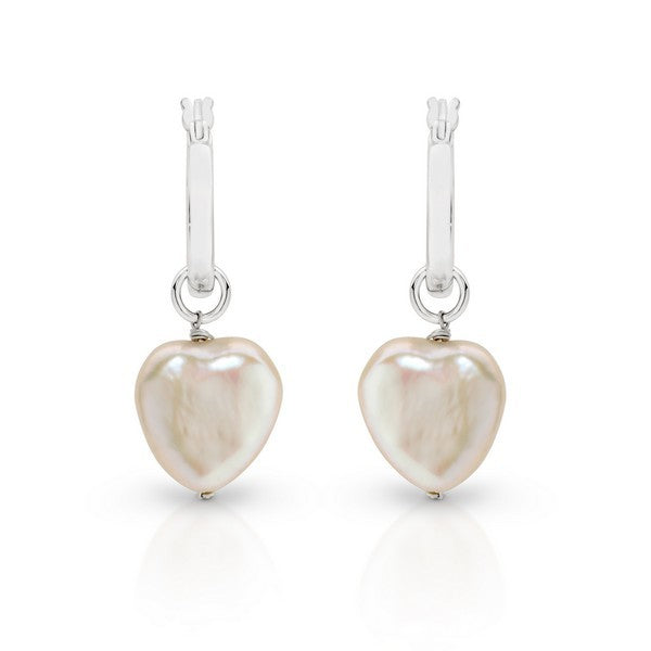 Sterling Silver Polished Hoop Earrings with hanging 10*13mm Cultured Freshwater Heart Shaped coin pearl