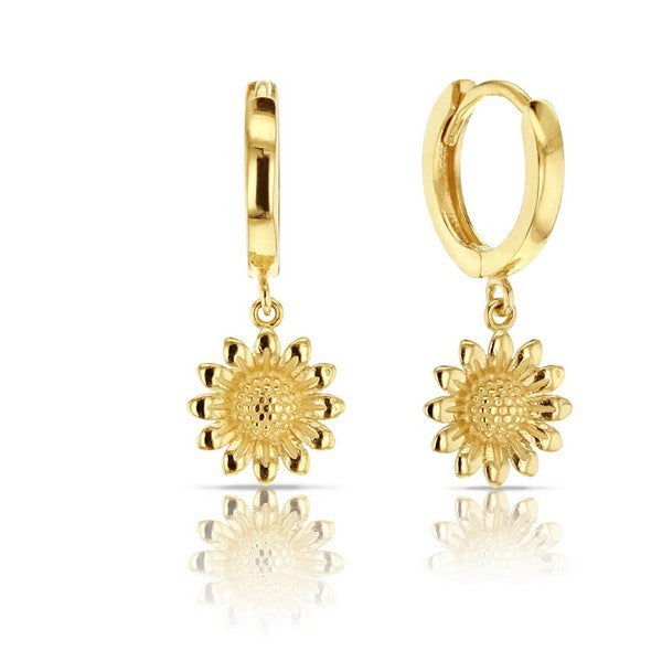 9ct YG Sunflower Hoop Drop Earrings