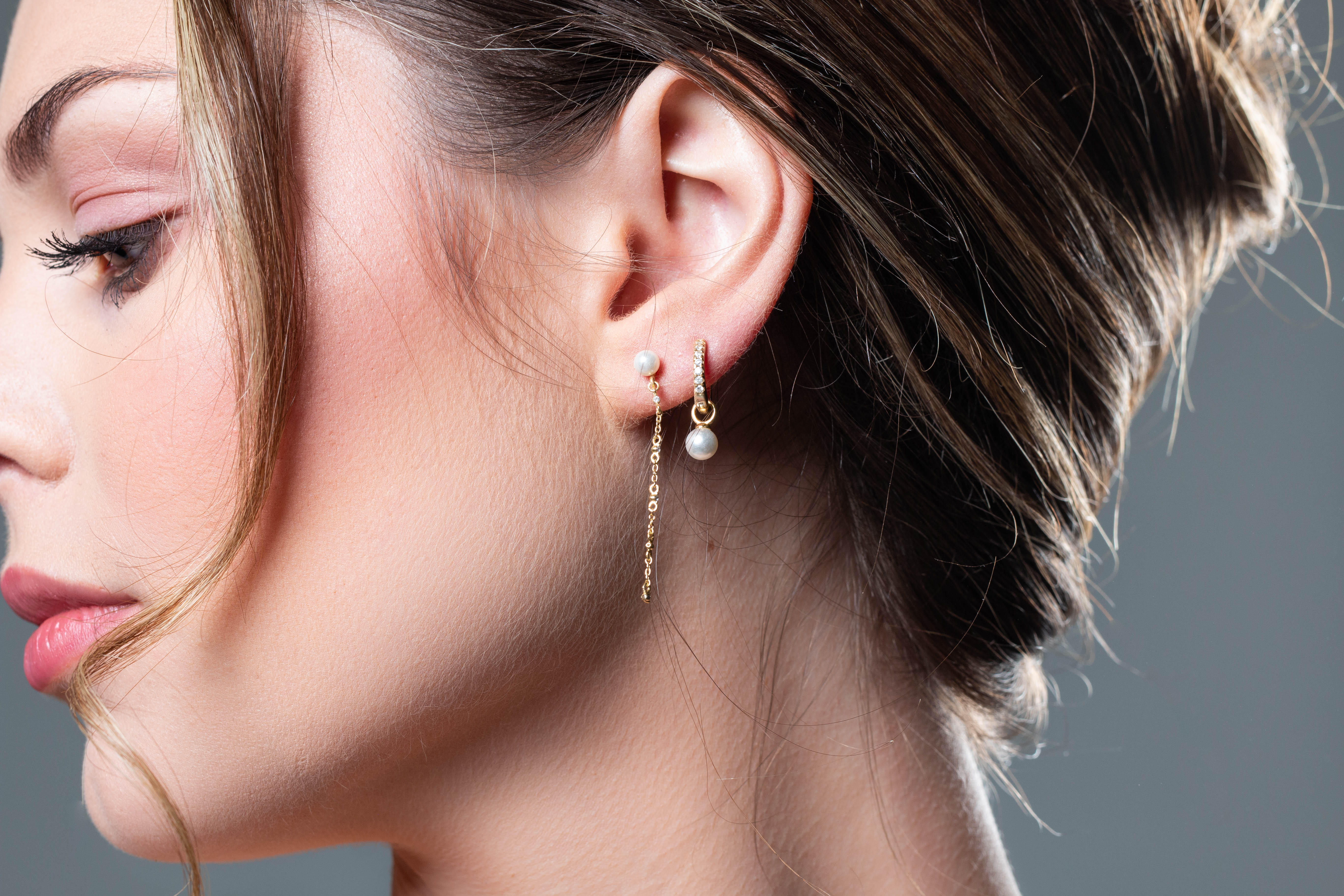 The Georgini Baby Pearl Hoops are designed to work perfectly in your seconds and match back with all pieces in the Red Carpet Collection.  With a removable Pearl charm you can easily switch them up to complement any look.  If you love a tiny hoop this is for you!  Crafted from luxurious 18ct Gold plated 925 Sterling Silver, hoop measures approximately 12mm.