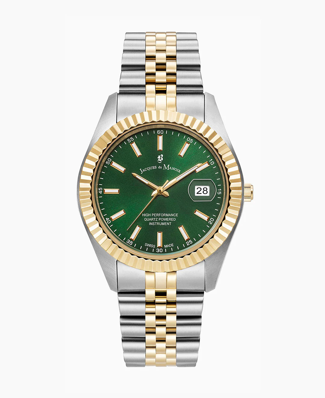 The Inspiration Business in bicolor stainless steel showcases a refined balance of modern versatility and Swiss precision. Its vibrant green dial with gold-tone hands offers a bold yet elegant look, while the 40mm case and butterfly clasp ensure a comfortable fit. Powered by a reliable Ronda quartz movement with a long battery life, this timepiece is designed for men and women who want a striking dress watch that seamlessly transitions from professional wear to evening style.
