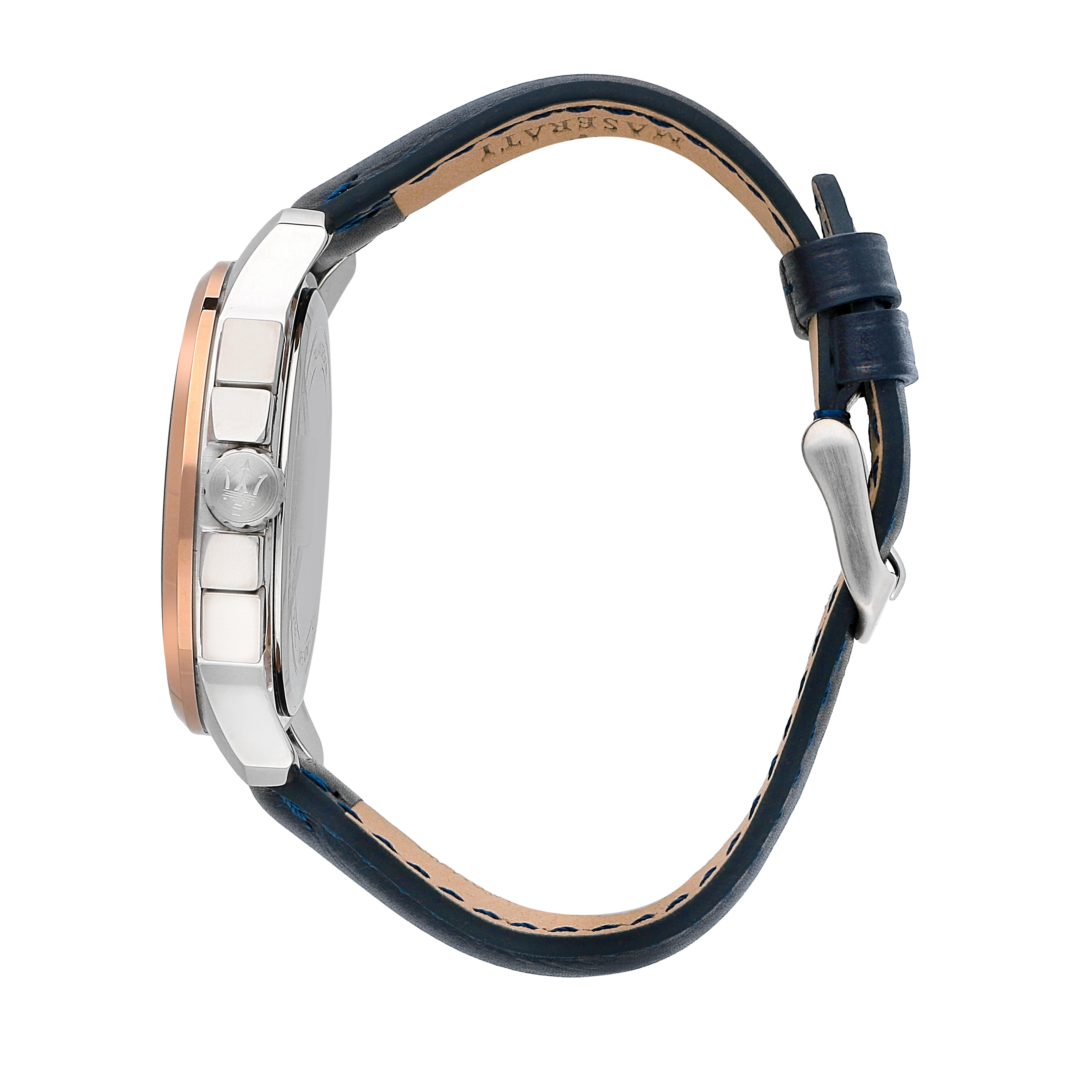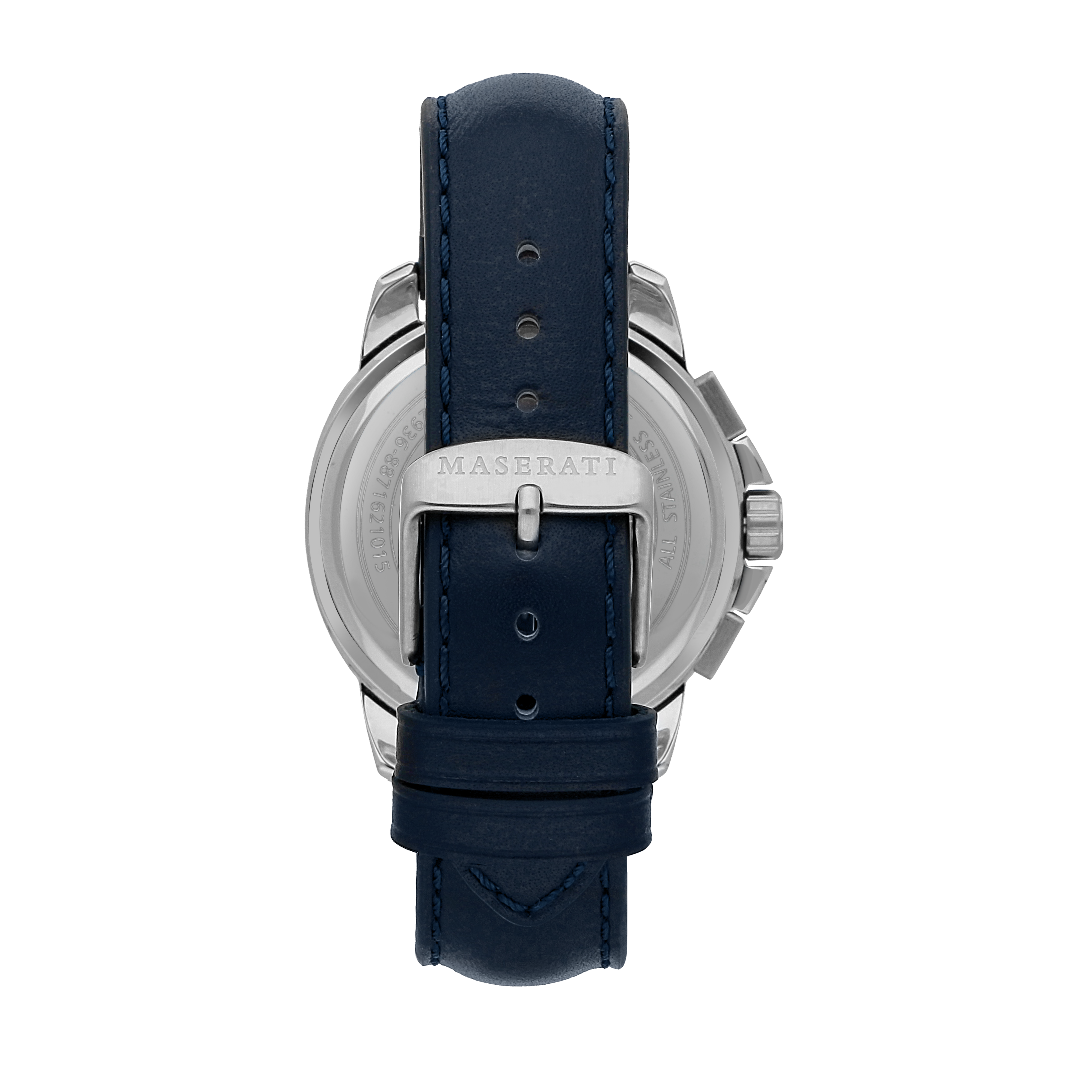 A sporty mood and renovated design for the chronographs of the Successo Collection sets them a class apart. Presenting the Maserati Successo 44mm Navy Blue Chronograph, a sports watch for the elite. A sports collection and in step with the times. Bracelets with simple lines combine with dials with complex shapes, which elegantly enrich the models of this collection. The sturdy steel case encloses dials with bright and contrasting details. The dials, with refined colours, are perfectly matched with steel bracelets or leather straps, which alternate in models and shapes. The counters give the models of the Successo Collection a decidedly sporty chic look. Another distinctive detail of all the watches in the collection are the luminous indexes and hands that enrich the dials with light and give an extra touch of sportiness.
