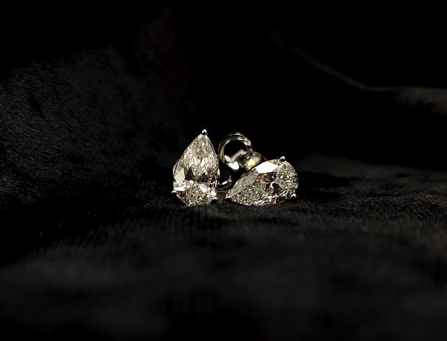 MJ 18k Pear Cut 2.00ct Lab Diamond Studs
