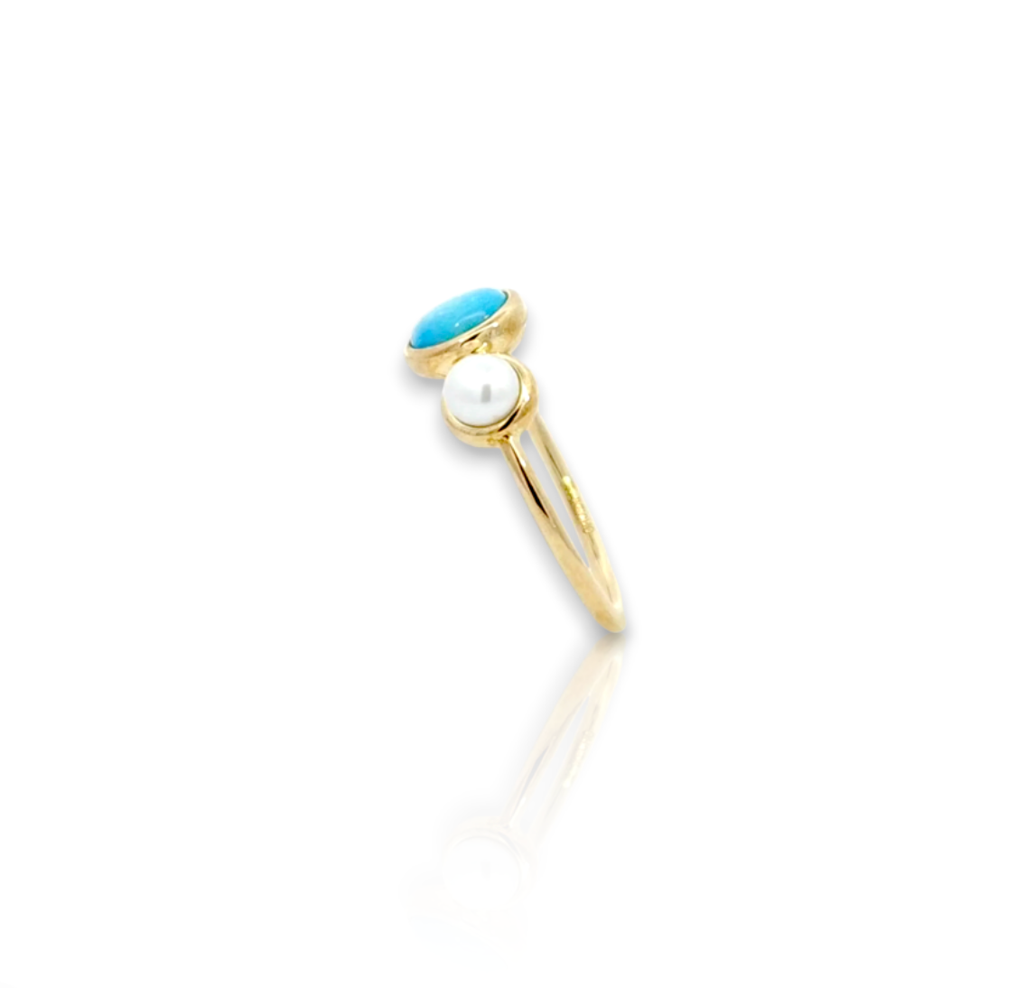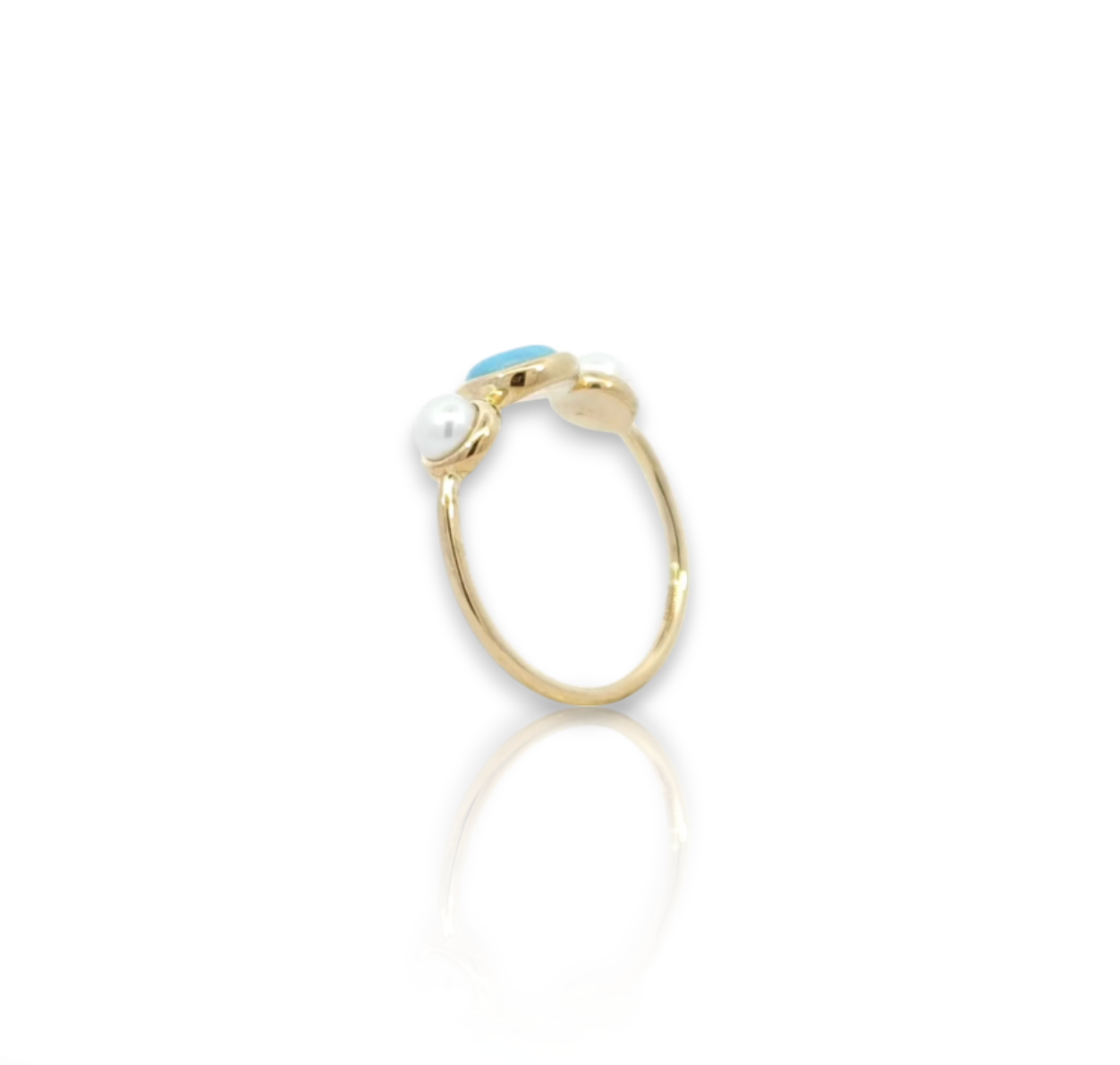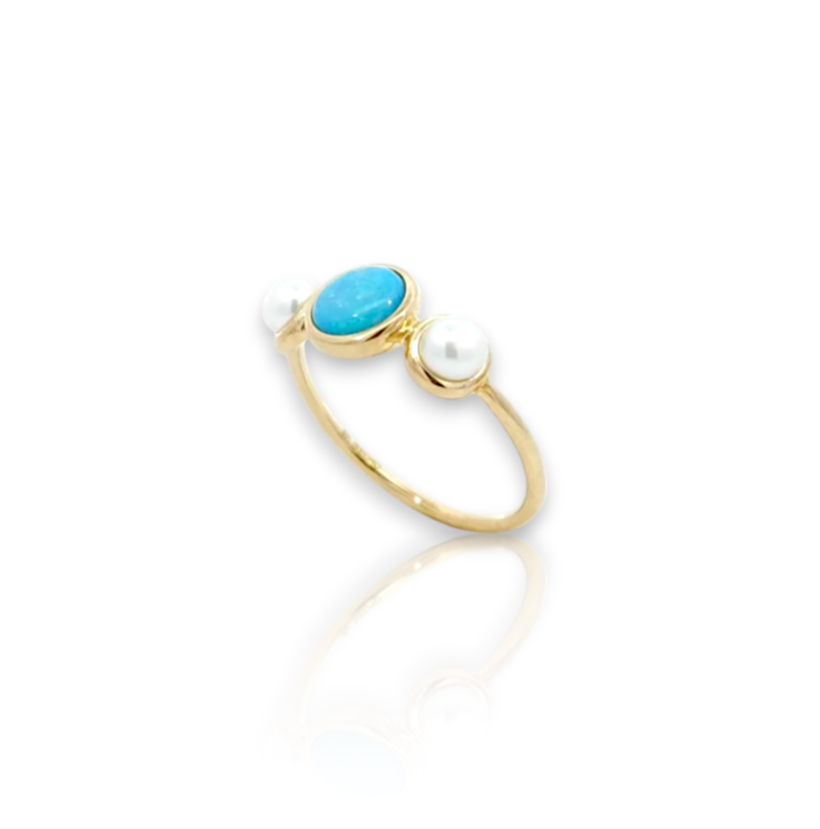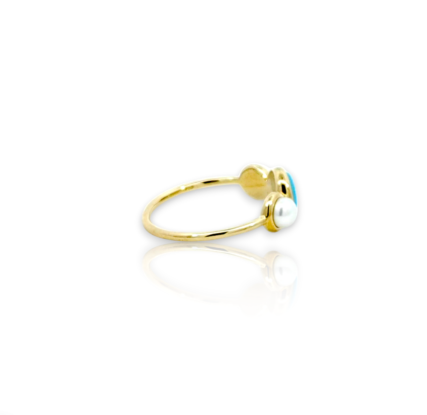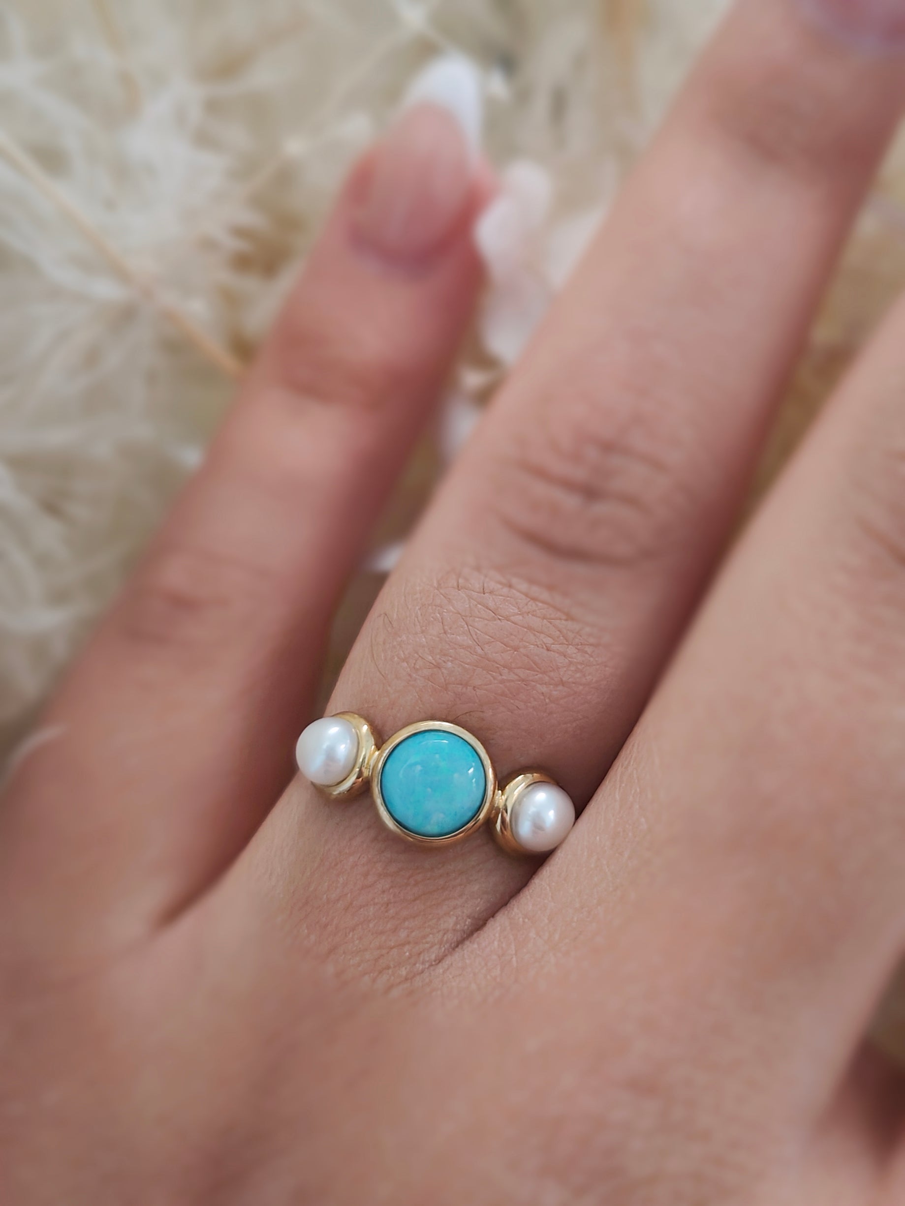 Add a touch of elegance to your hands with this beautiful opal and pear ring. Featuring beautiful freshwater pearls, and natural solid opals, this statement piece is guaranteed to complete your outfits.