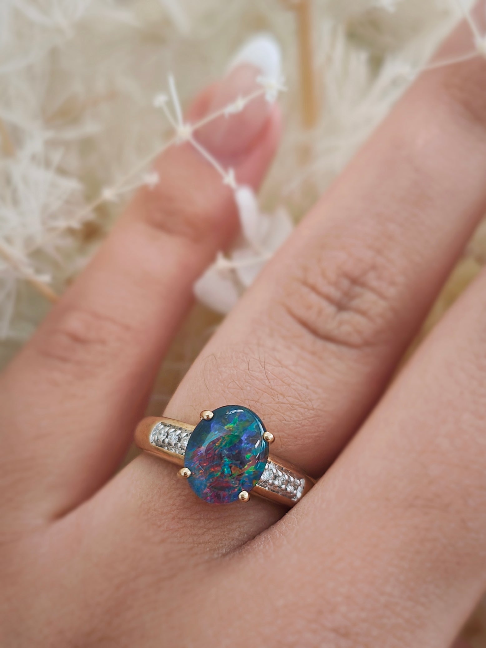 Stone- Natural Diamond, Natural Triplet Opal 10x8mm