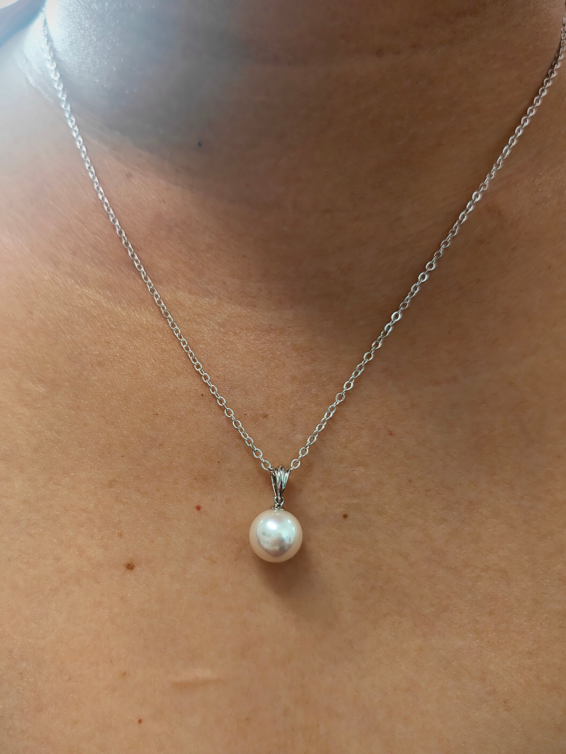 9ct White Gold Plain 10mm Freshwater Pearl Pendant