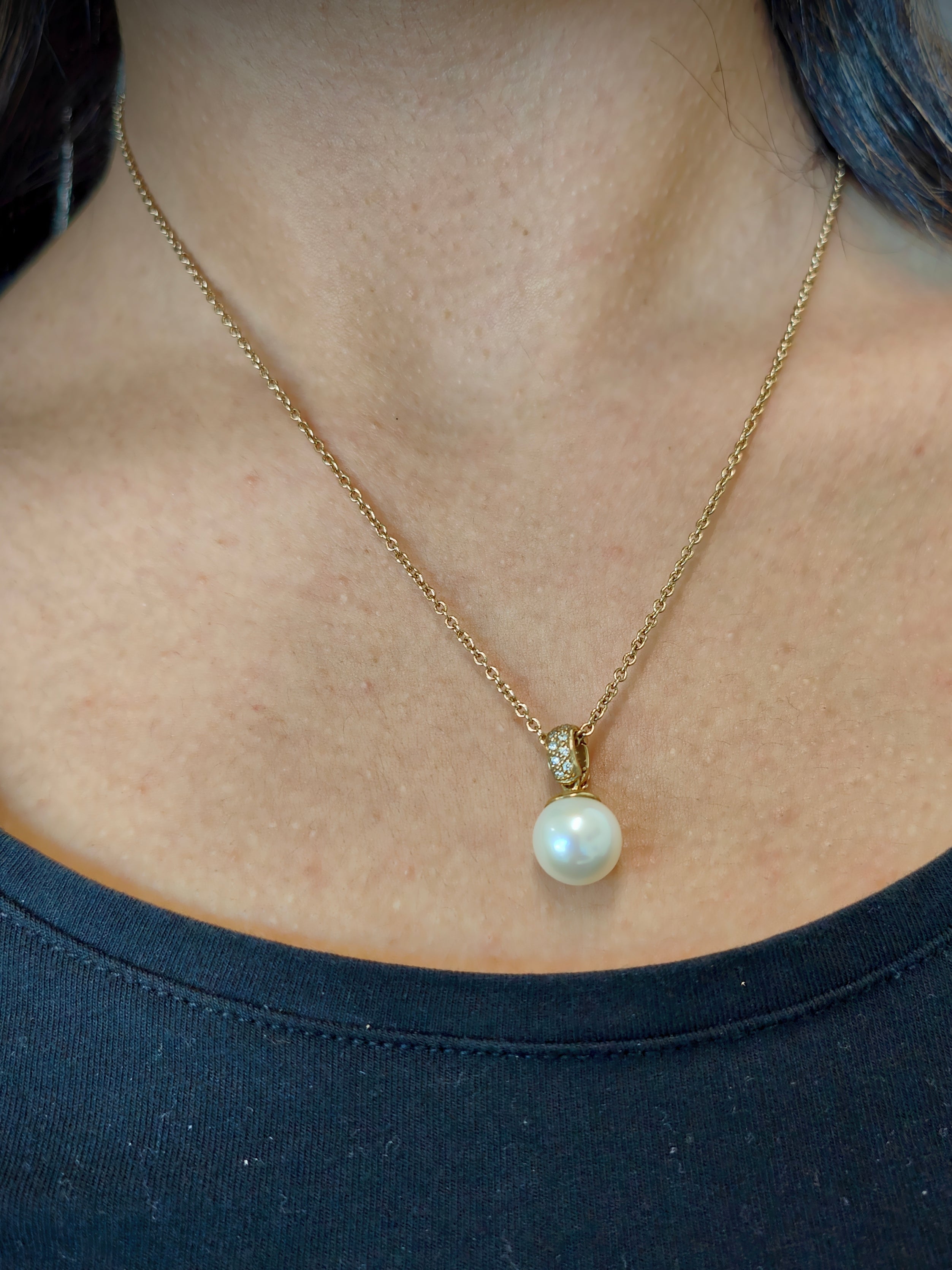 Elevate your elegance with this stunning 9ct yellow gold Diamond and Pearl Pendant. Featuring a luminous pearl gracefully surrounded by sparkling diamonds, this pendant captures timeless beauty and sophistication. Perfect for both everyday wear and special occasions, its exquisite craftsmanship ensures lasting shine and durability. Add a touch of classic charm and refined luxury to your jewelry collection with this versatile piece that enhances any outfit effortlessly. Make a memorable statement with the harmonious blend of gold, diamonds, and pearl that embodies pure elegance.