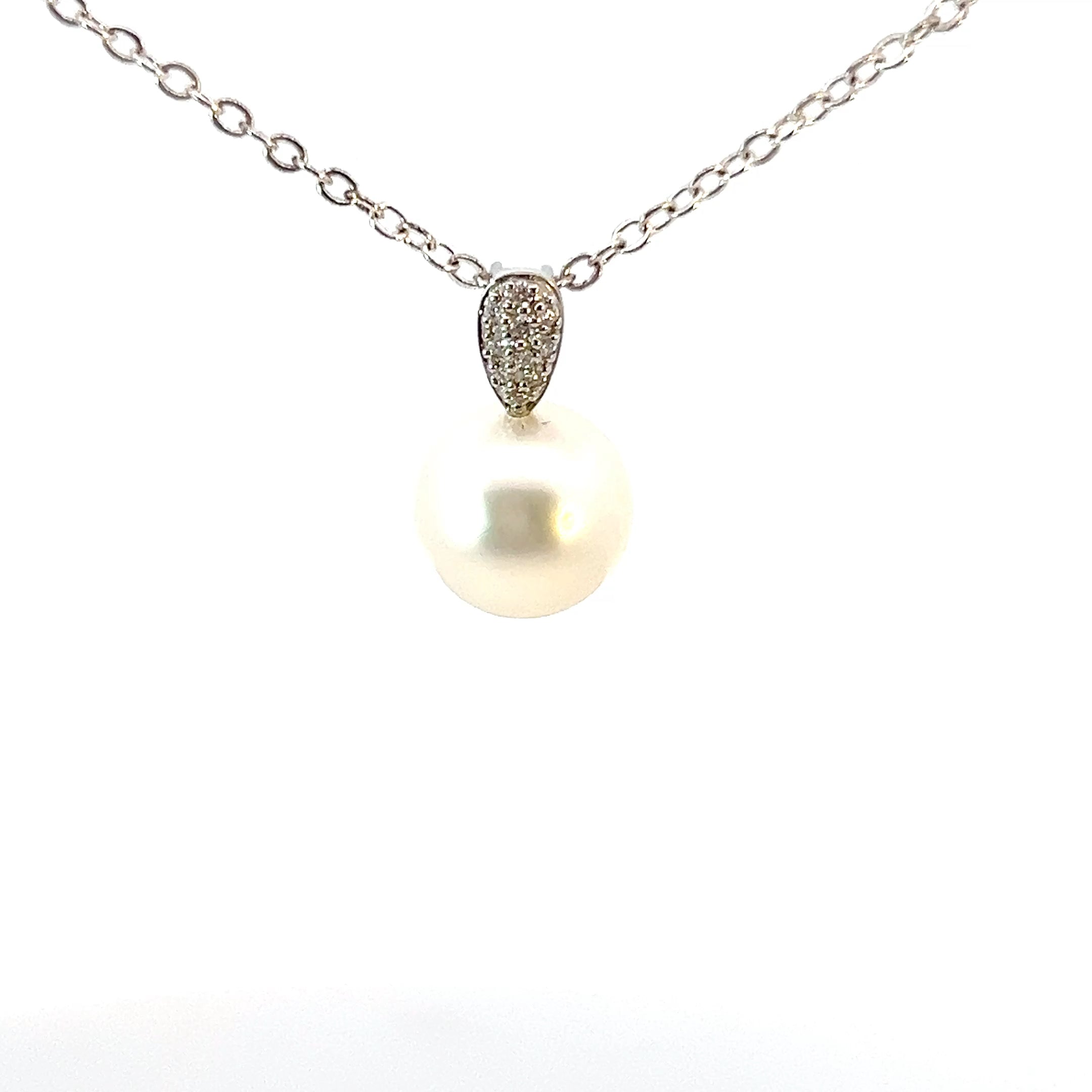 9ct White Gold 11mm Pearl & Diamond Pendant