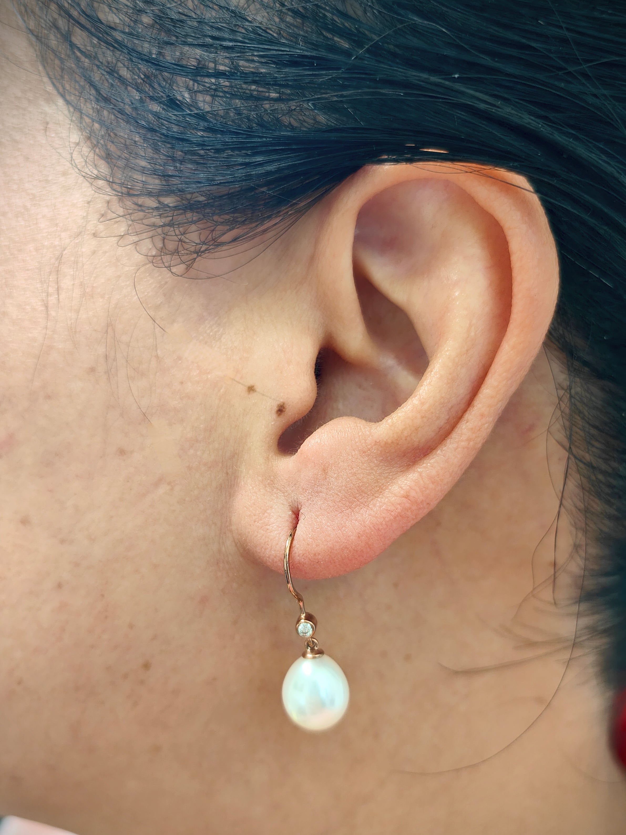 9ct Rose Gold Hook Pearl Earrings with Diamond