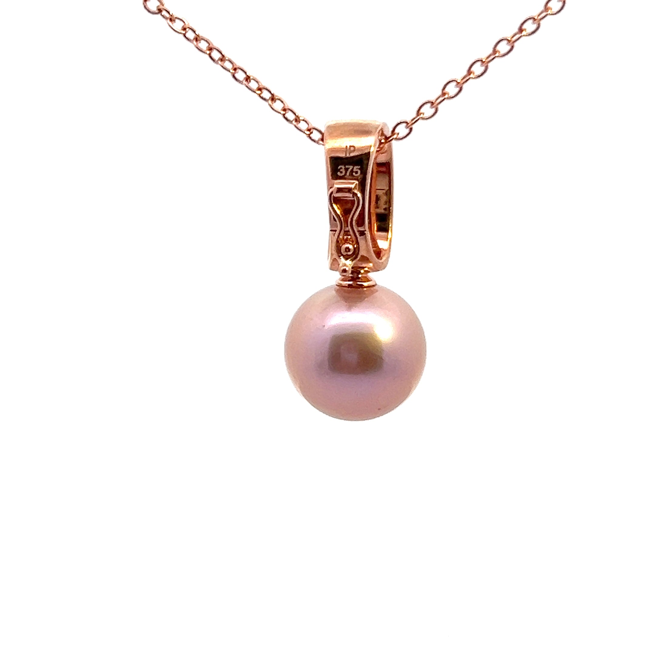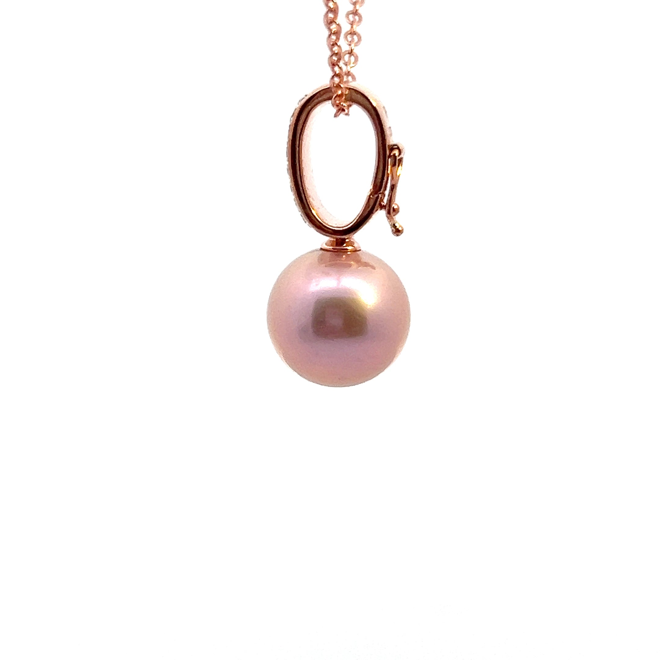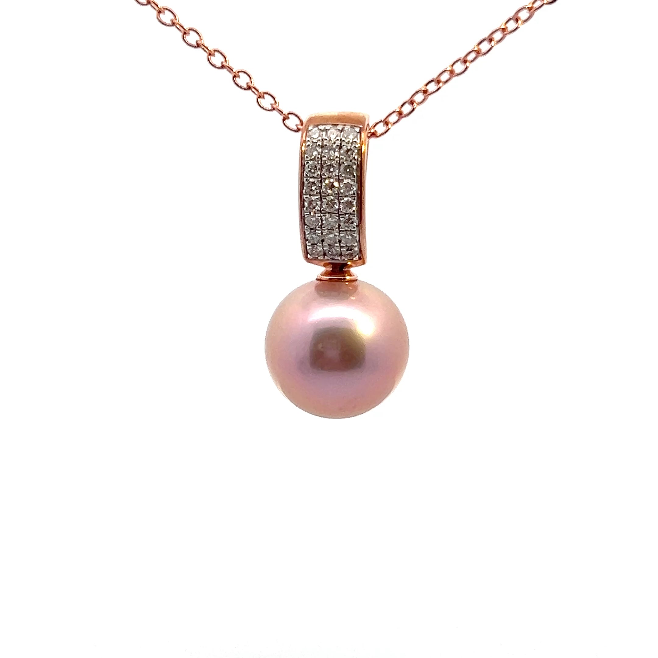 9ct Rose Gold Diamond Enhancer with 12mm Edison Pink Pearl
