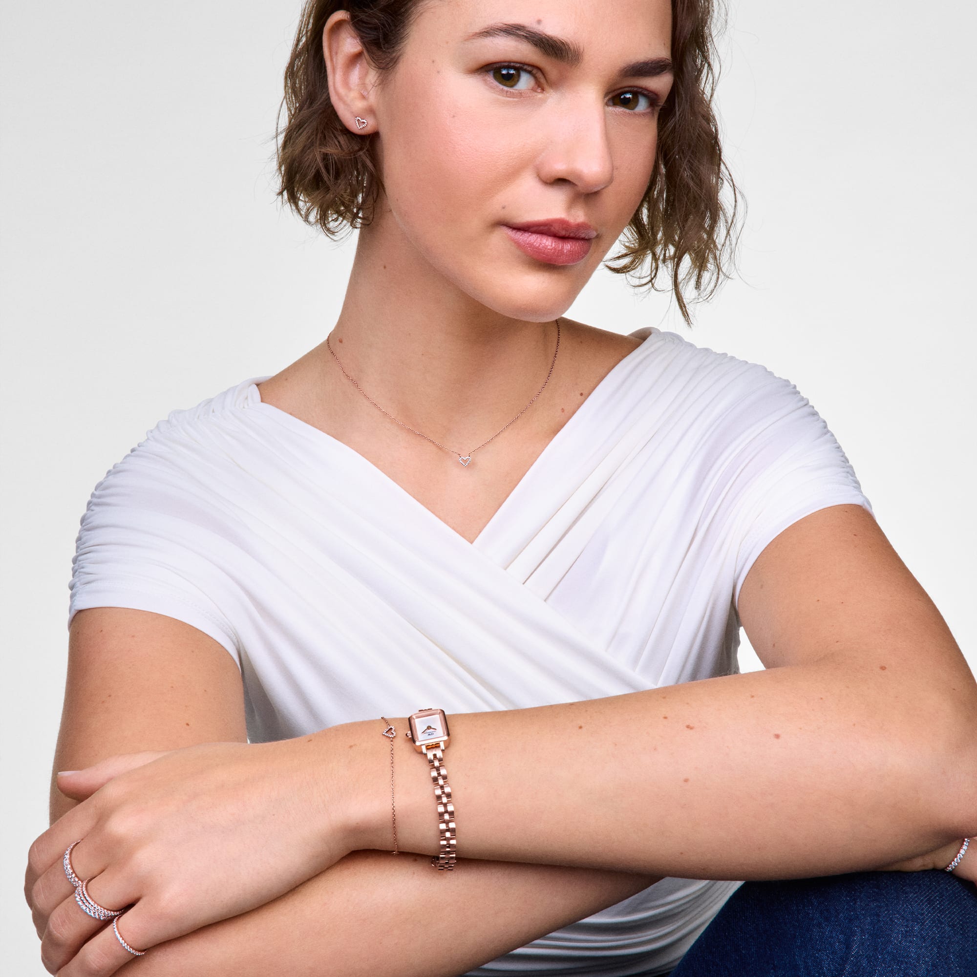 The Mirelle collection captures the elegance of minimalist design with delicate details that make a significant impact. Crafted with 0.8mm White stones and set with meticulous precision for a sparkling yet subtle effect, the Heart pieces are perfect for building your unique look. The pieces in this collection, including bracelets, necklaces, and earrings, have a refined 1.4mm thickness, offering quiet elegance perfect for everyday wear, available in Gold, Silver, and Rose Gold.