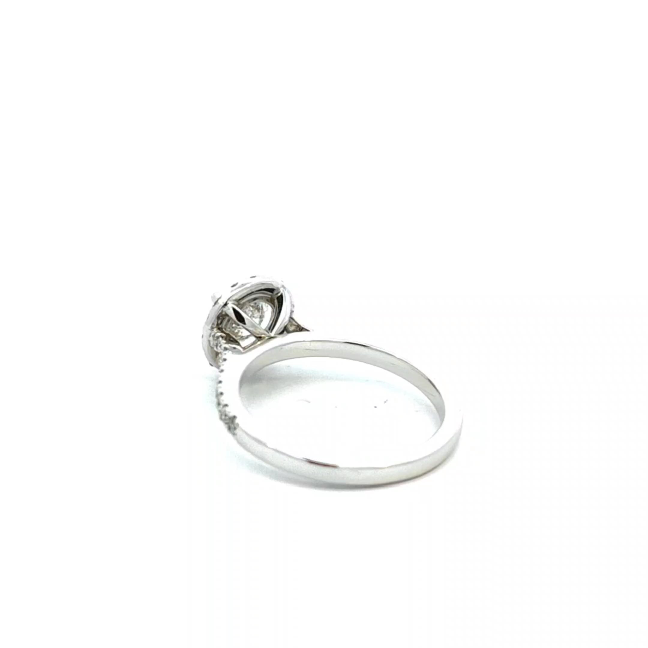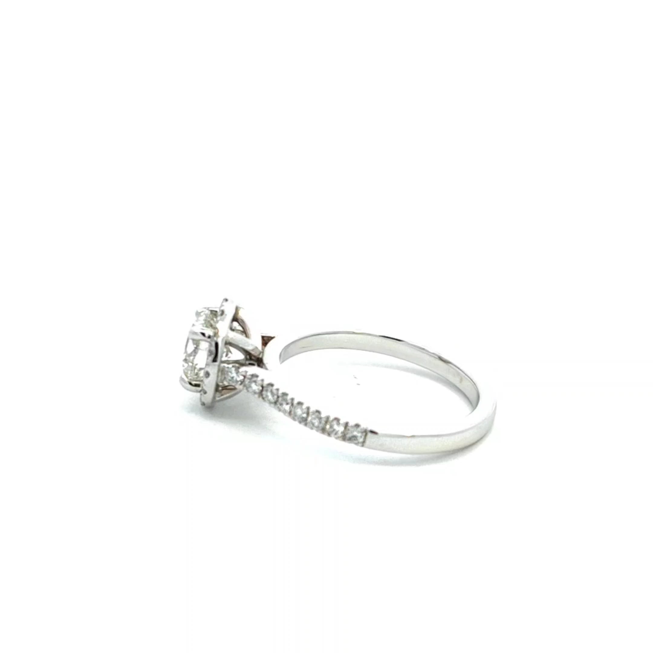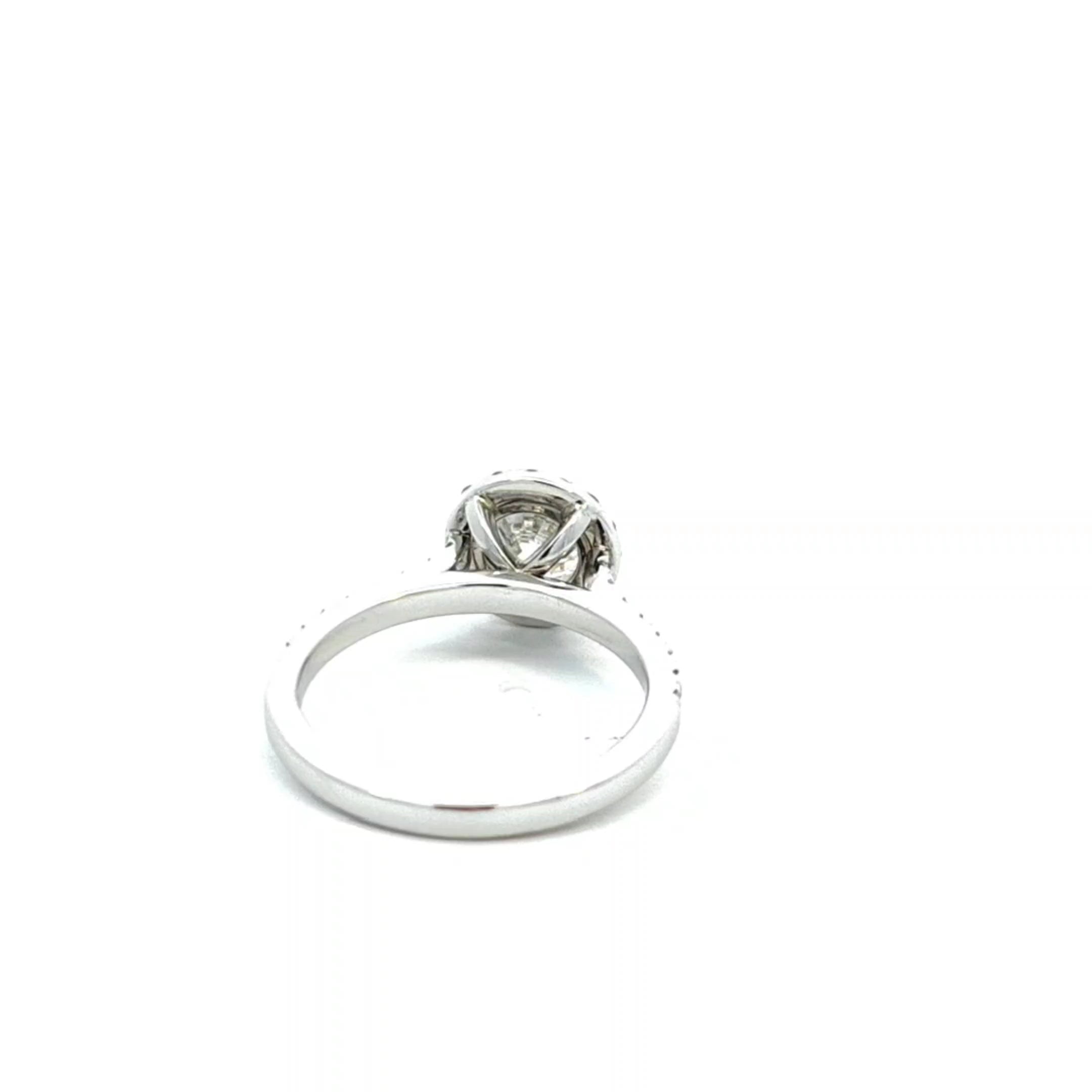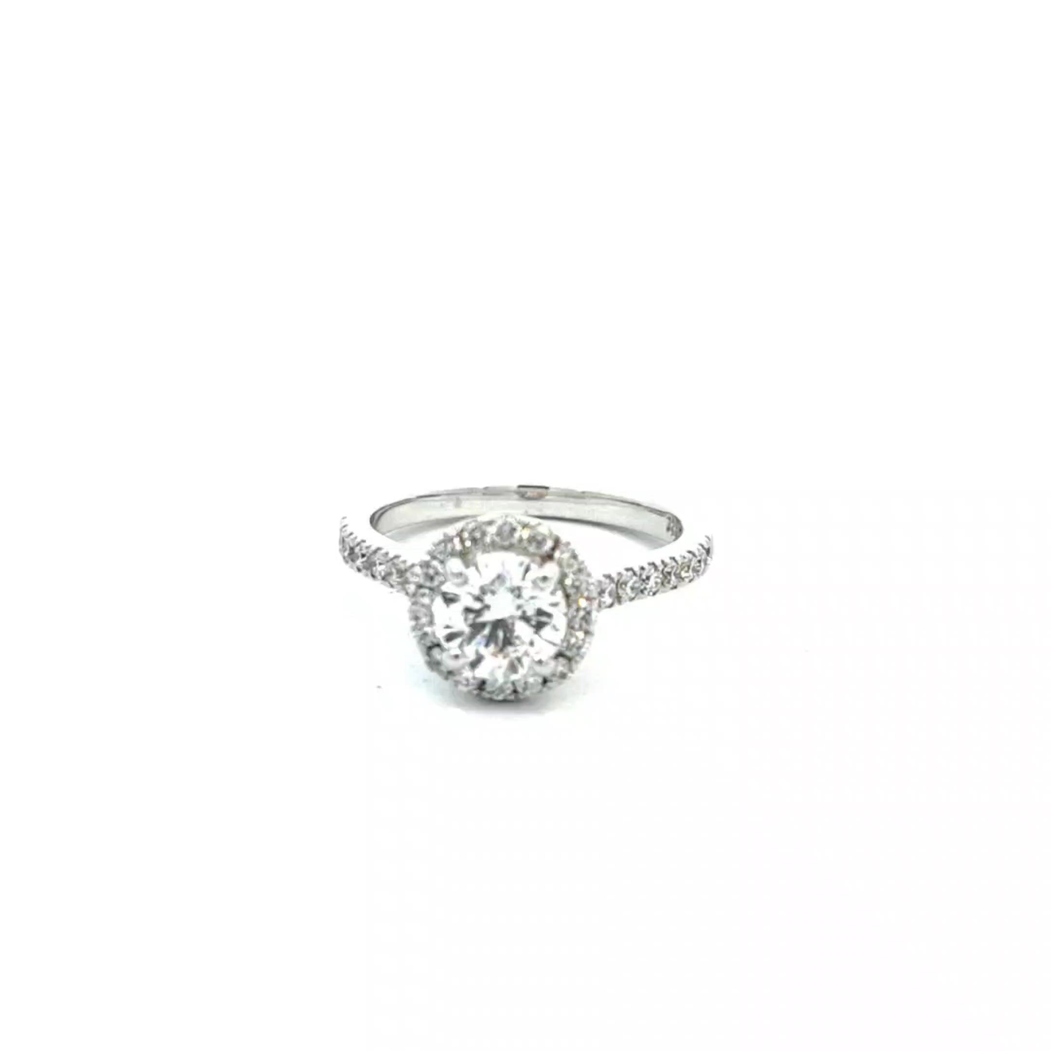 Witness the blossoming of brilliance with the Starlight Bloom Ring. A captivating round diamond, like a star at its zenith, is encircled by a halo of sparkling pave diamonds, creating a breathtaking floral effect. The delicate, diamond-accented band adds to its ethereal charm. Let the Starlight Bloom Ring be the radiant symbol of your love, blooming forever.