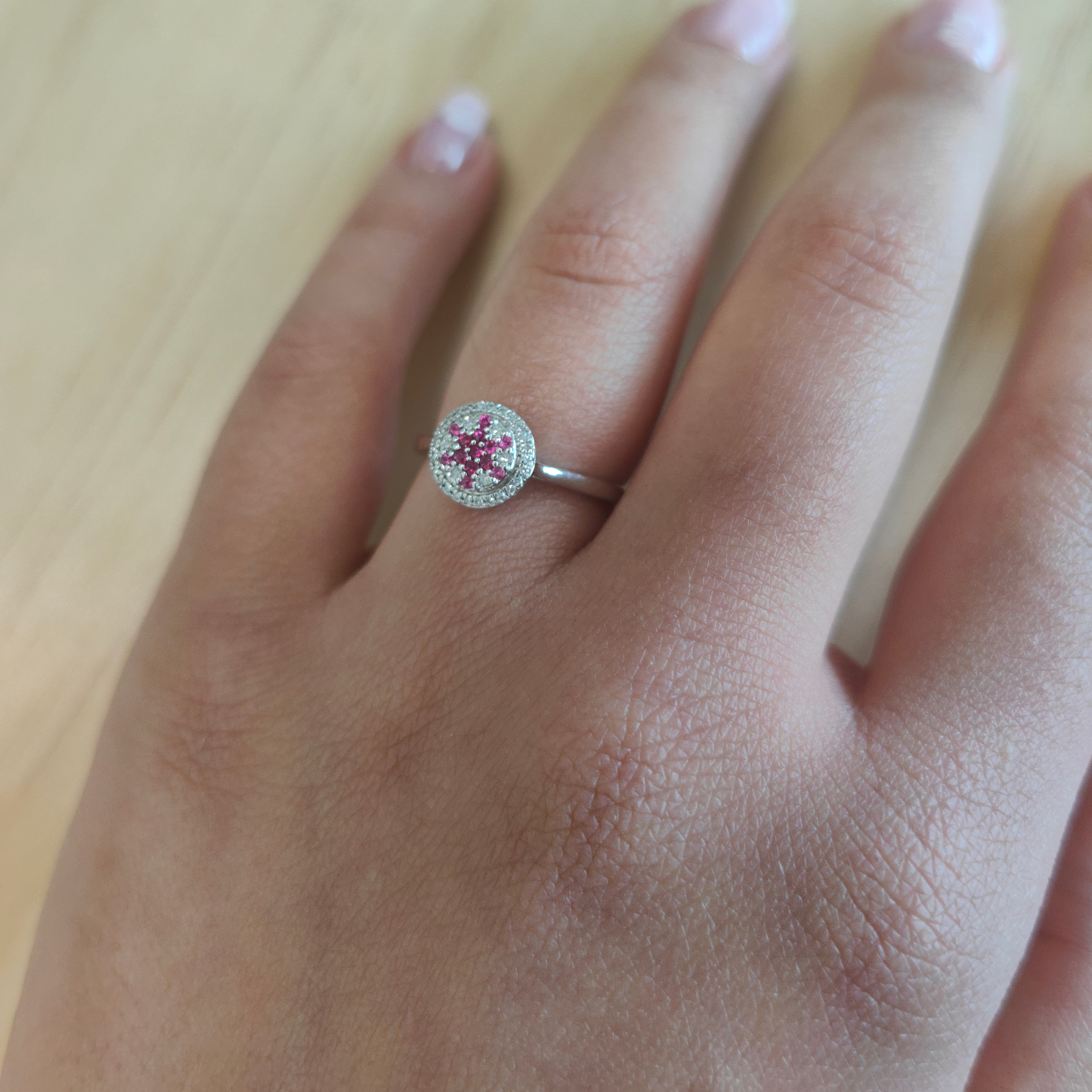 9ct White Gold Ruby and Diamond Compass Ring