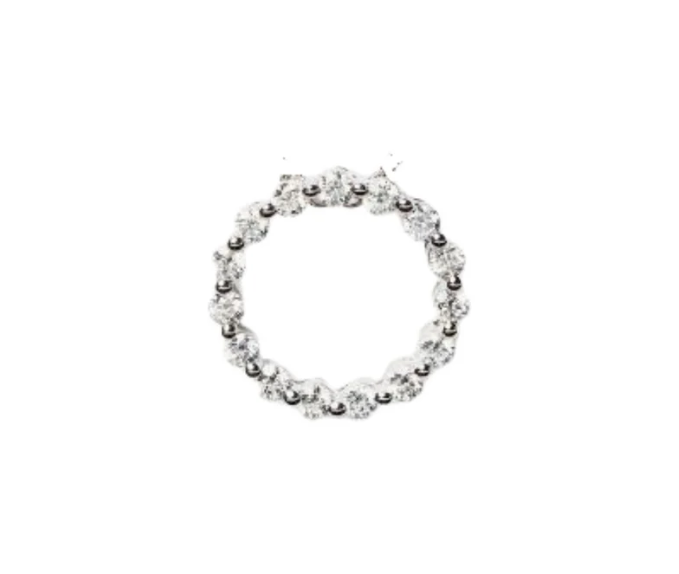 Crafted from luxurious 18kt white gold, this exquisite Diamond Circle Pendant features 16 dazzling diamonds totaling 0.50 carats, each expertly bezel set to enhance their brilliance and secure their beauty. Measuring 14.2mm in diameter, its elegant circular design symbolizes unity and timeless elegance, making it a perfect accessory for any occasion. Whether worn alone for a subtle sparkle or layered with other pieces, this pendant adds a refined touch to your jewelry collection. Elevate your style with a piece that combines classic craftsmanship and modern sophistication.