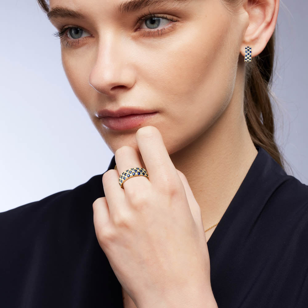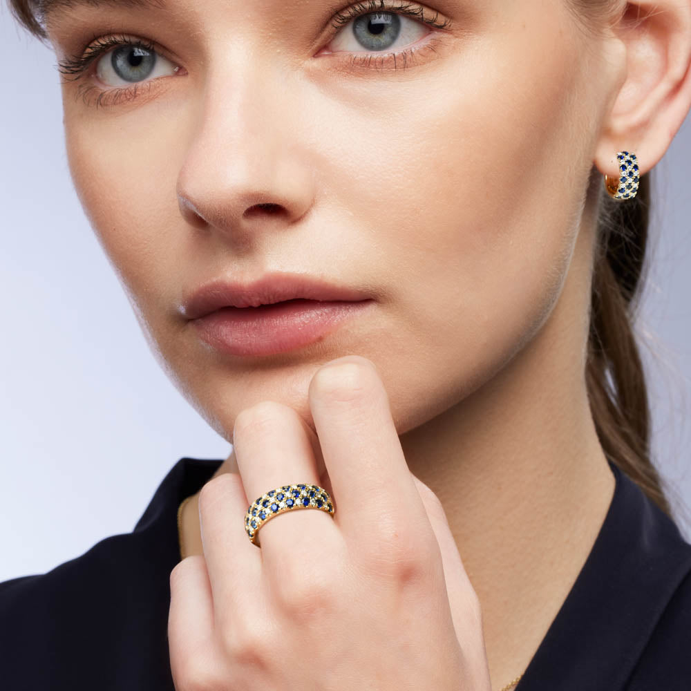 An exquisite ring design elevated by glistening round cut Blue Australian Sapphires, and set with gorgeous natural White Diamonds to enhance the vivid hues of the Sapphire stones. The Clarette Ring is crafted in 18ct Yellow Gold, a durable and long lasting metal, making for a unique sentimental heirloom.