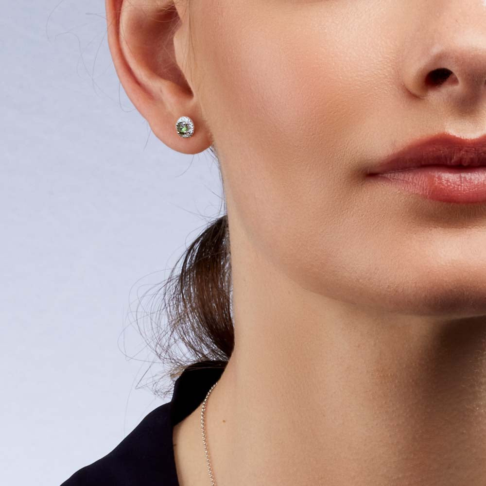 Timeless and extremely versatile, Clarissa is a classic round design pair of stud earrings, showcasing two sparkling round Green Australian Sapphires in the centre, haloed by glistening White Diamonds. Set in durable 18ct White Gold, this piece is a must have staple for your collection.