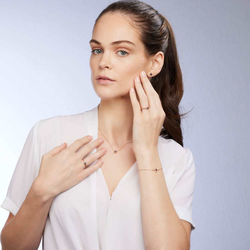 Simple and sweet, our Jolene Bracelet is a rope-twist cross design featuring a single stunning Australian Sapphire within soft, rounded petals. Our bracelet is made to fit all wrists with three different anchor points. Jolene is crafted in 9ct Rose, White or Yellow Gold.