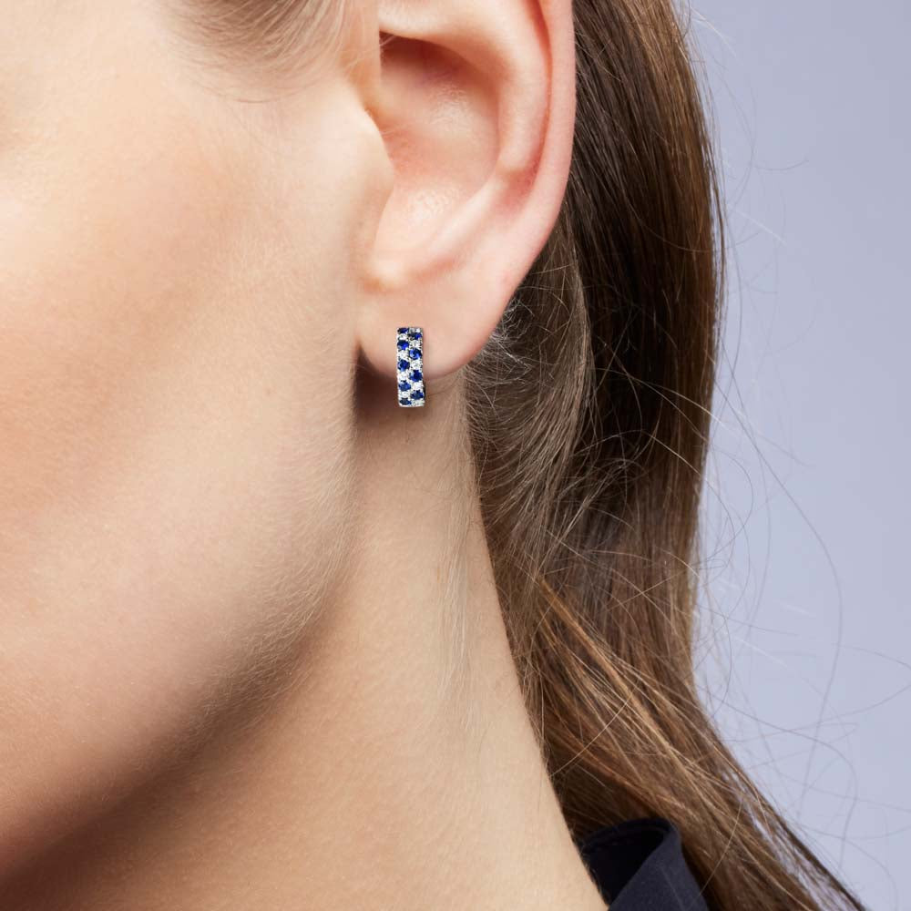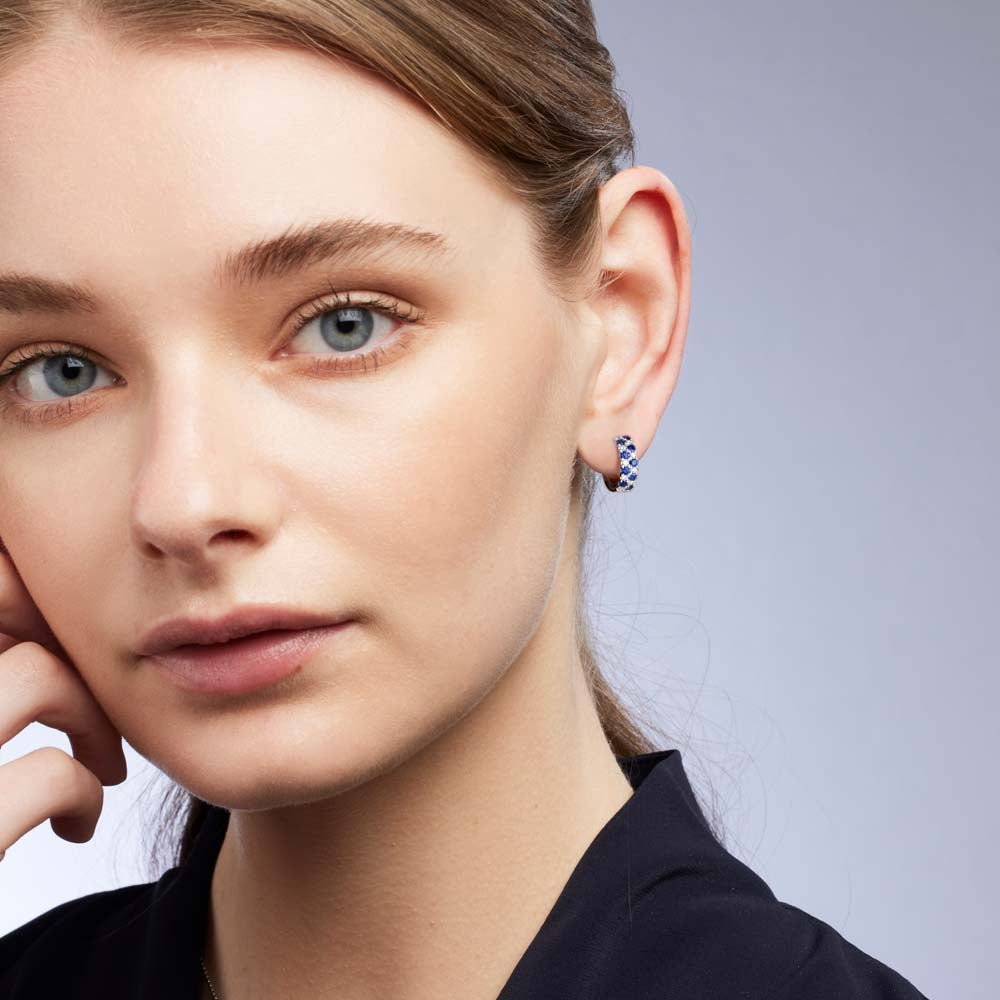 Enhance your earring collection with our exquisite Vivienne Earrings. Featuring exquisite round cut Blue Australian Sapphires, complemented by elegant round cut White Diamonds, Vivienne is the perfect pair of hoop earrings to add glamour and classy elegance to your look. Crafted in 18ct White Gold, a durable and long lasting metal.