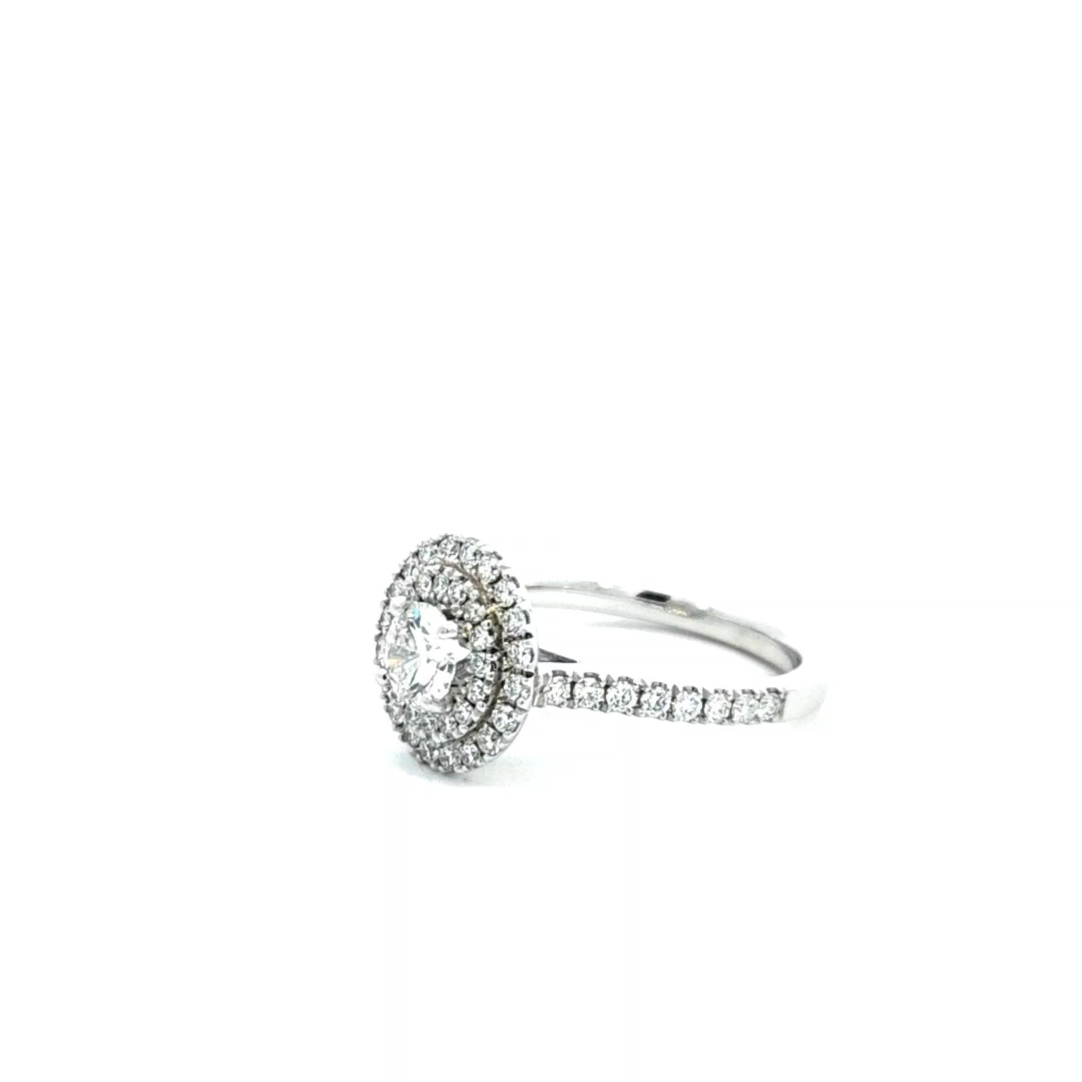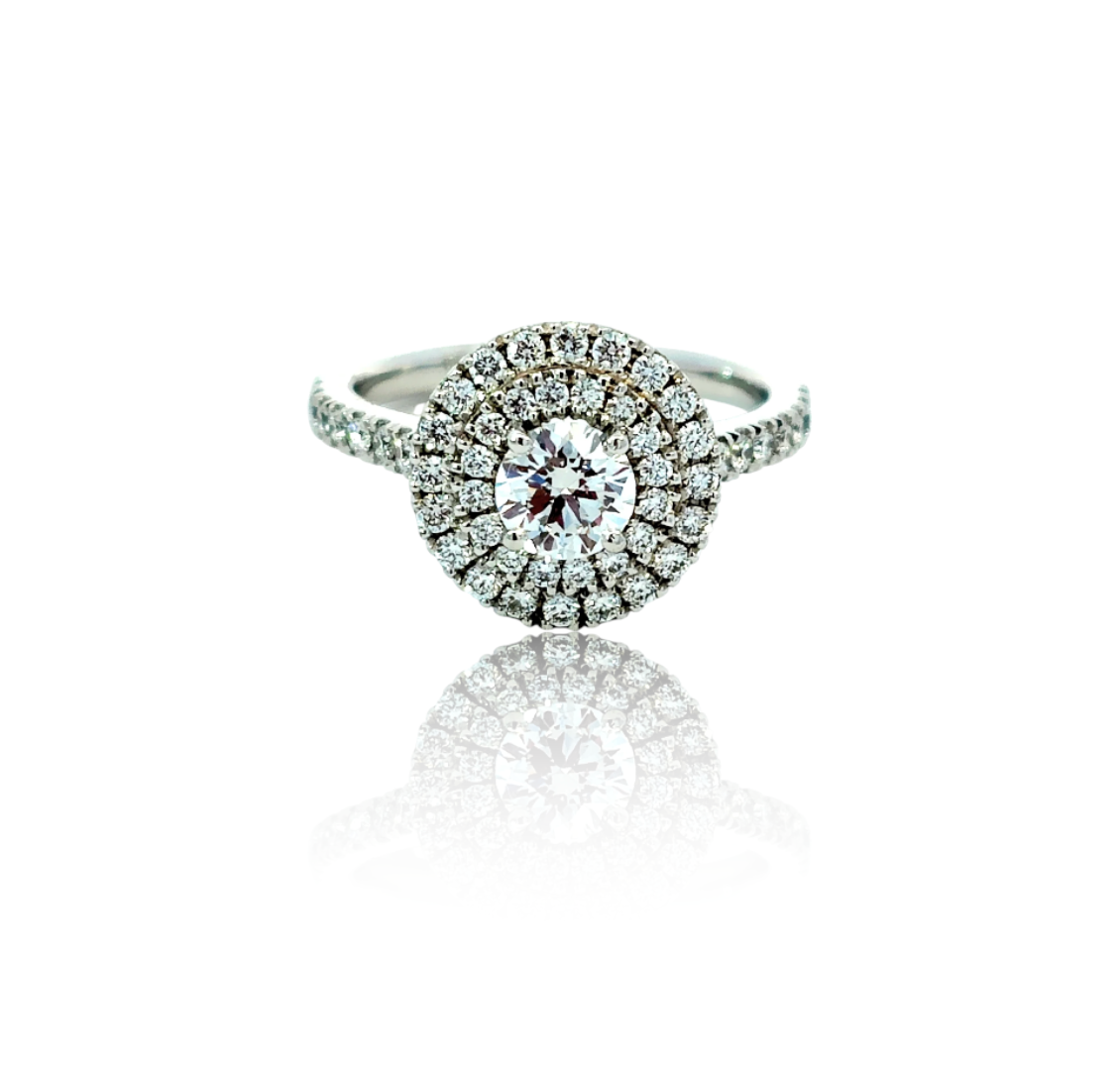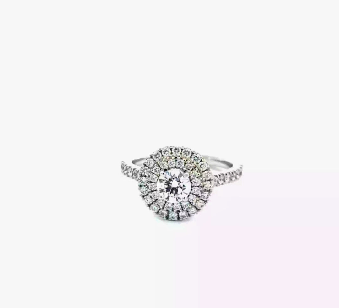 Experience the captivating beauty of the Double Bloom Ring. A central diamond, like the heart of a flower, is encircled by two layers of dazzling pave diamonds, creating a breathtaking bloom of light. The delicate, diamond-accented band enhances the ring's romantic allure. Let the Double Bloom Ring be a symbol of your love's blossoming beauty and enduring sparkle.