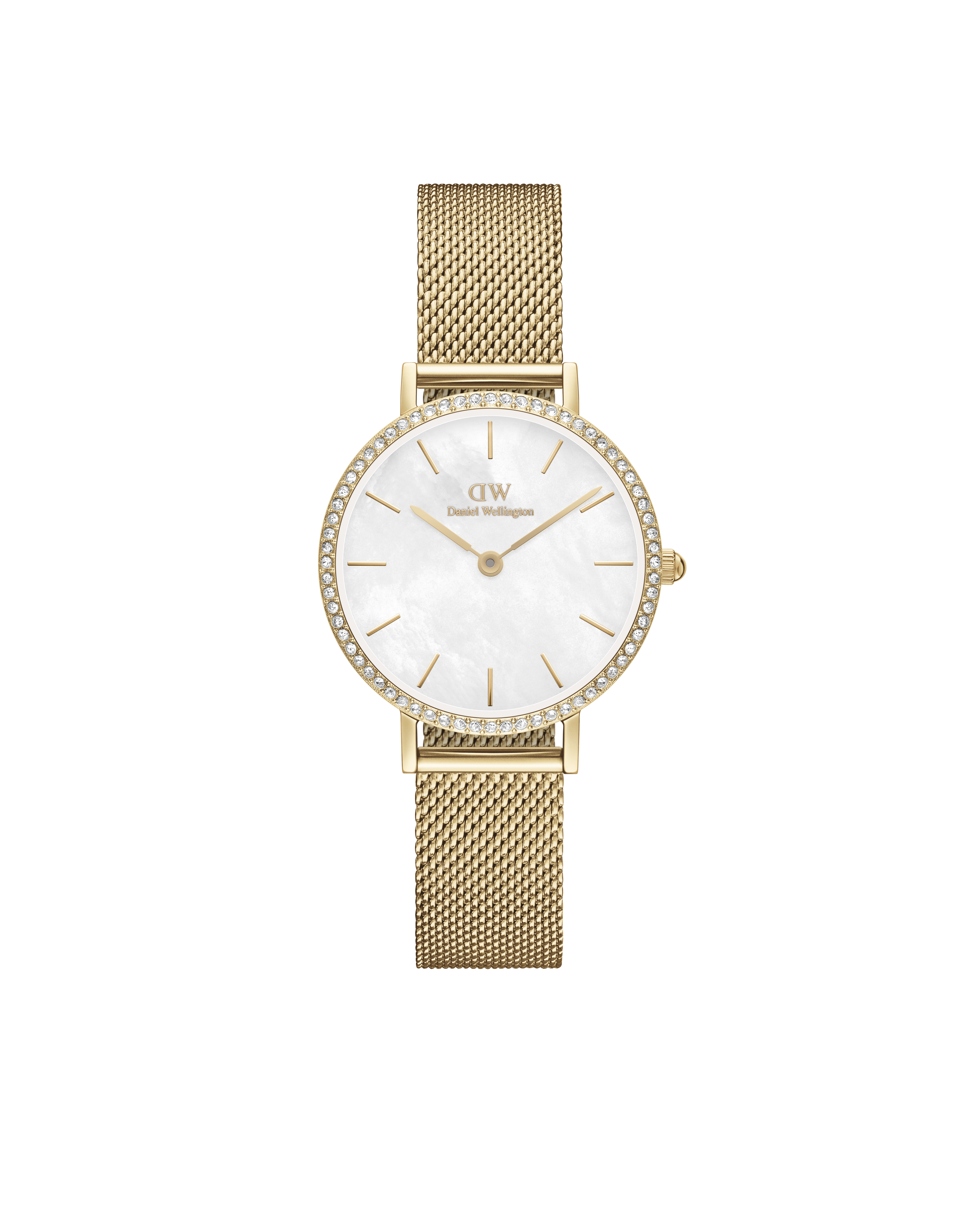 Daniel Wellington Petite 28 Bezel Mesh White Mother of Pearl Gold Watch