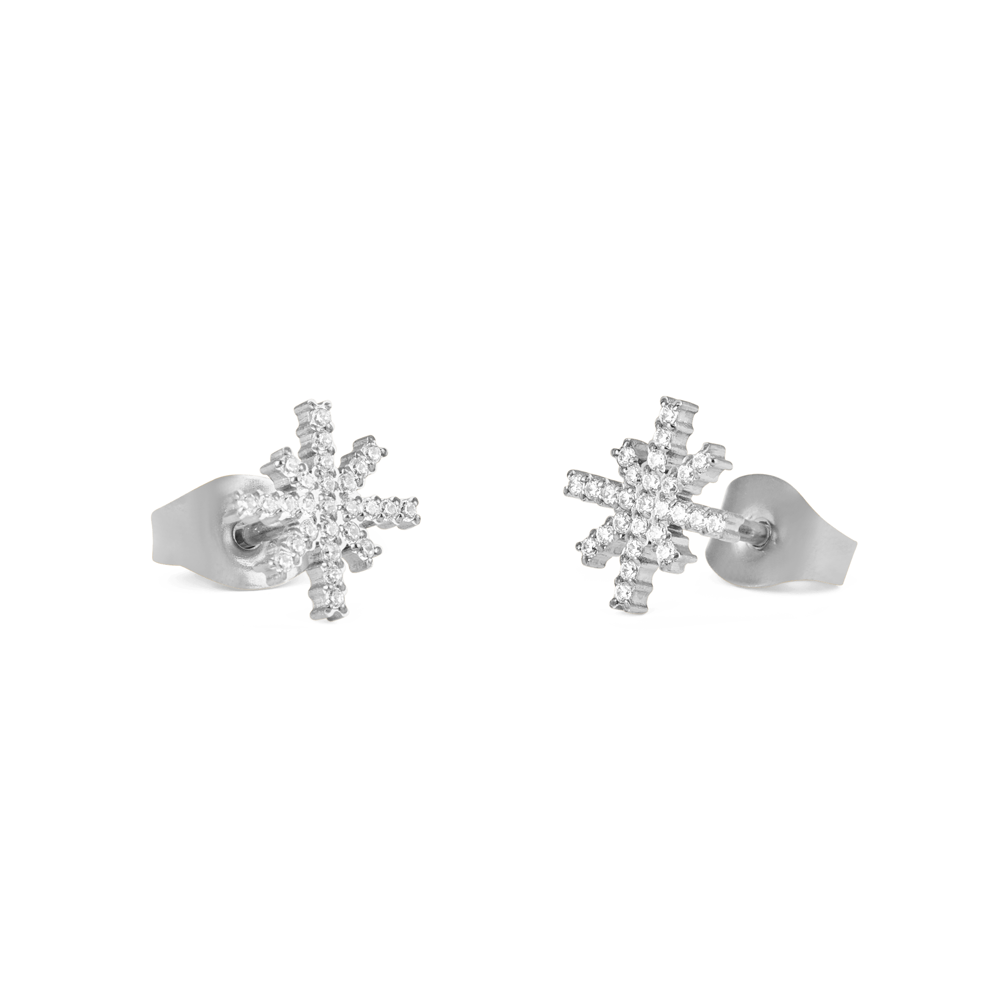 Silver Sparkling Star Drop Stud Earrings