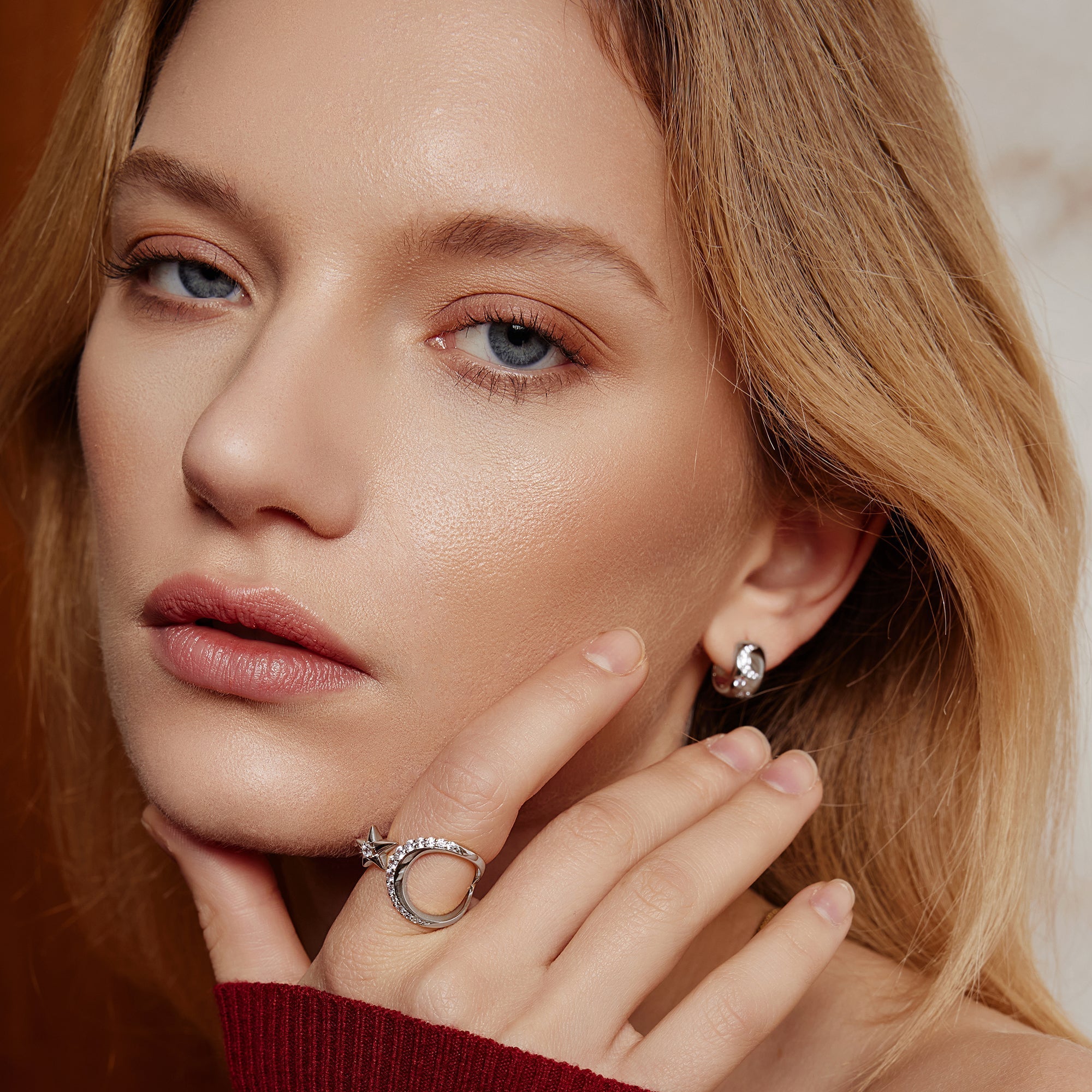 Silver Celestial Chunky Huggie Hoop Earrings