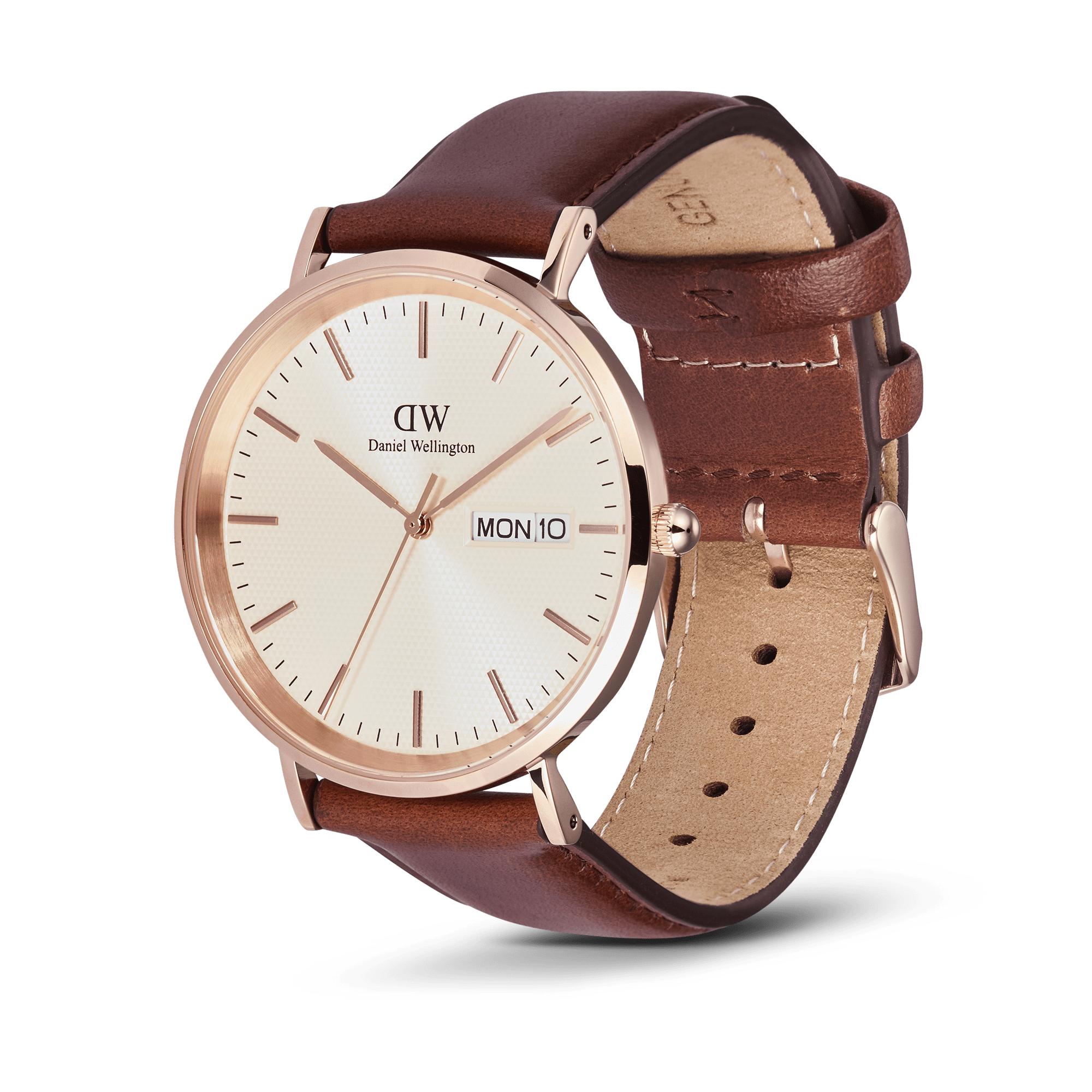 Daniel Wellington's Classic watch, known for seamlessly blending traditional craftsmanship with modern functionality, just got a well-deserved update. This design features a window that displays the date and the days of the week. The watch shares a similar case design as the previous “Multi-eye” with a circular brushed inside-chamfer between glass and dial, but the Classic Day Display boasts a pristine semi-transparent triangle pattern on the dial, creating a very subtle and elegant shimmering effect.
