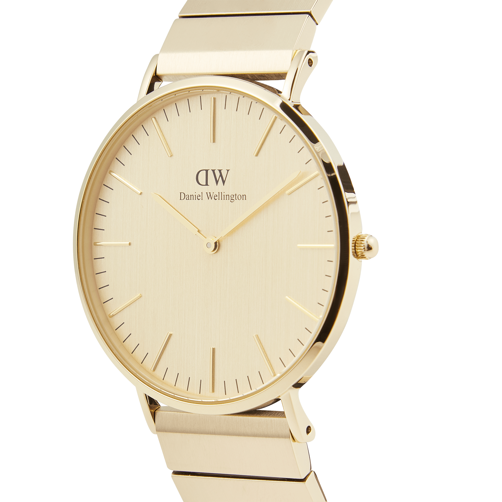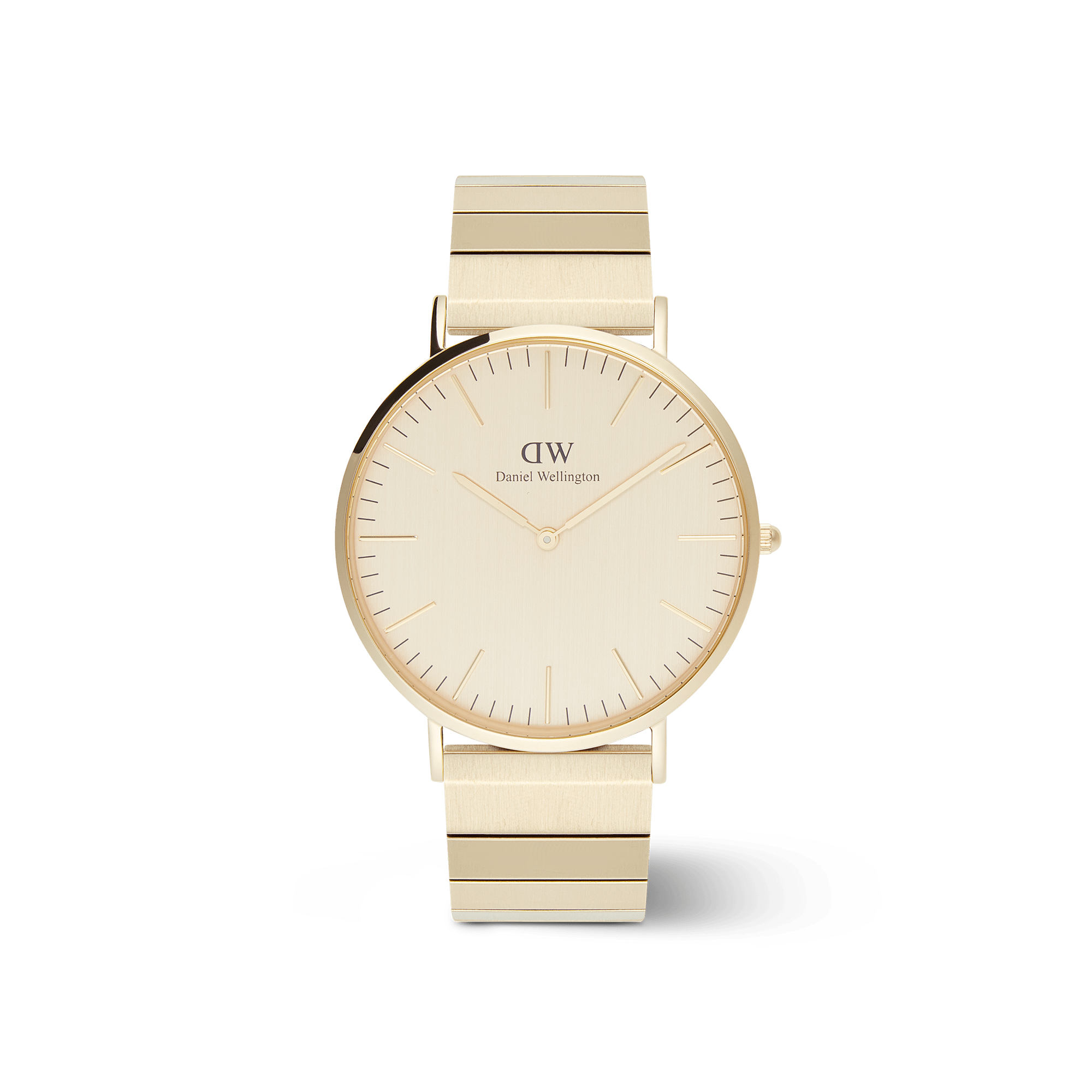 An extension of Daniel Wellington's best-selling Classic collection, but with a head-turning look of its own. This version features a brushed gold dial and our brand-new piano link strap, which is interchangeable for added versatility. That combination of brushed metal and sleek, geometric lines gives a more exclusive aesthetic for a true statement piece.