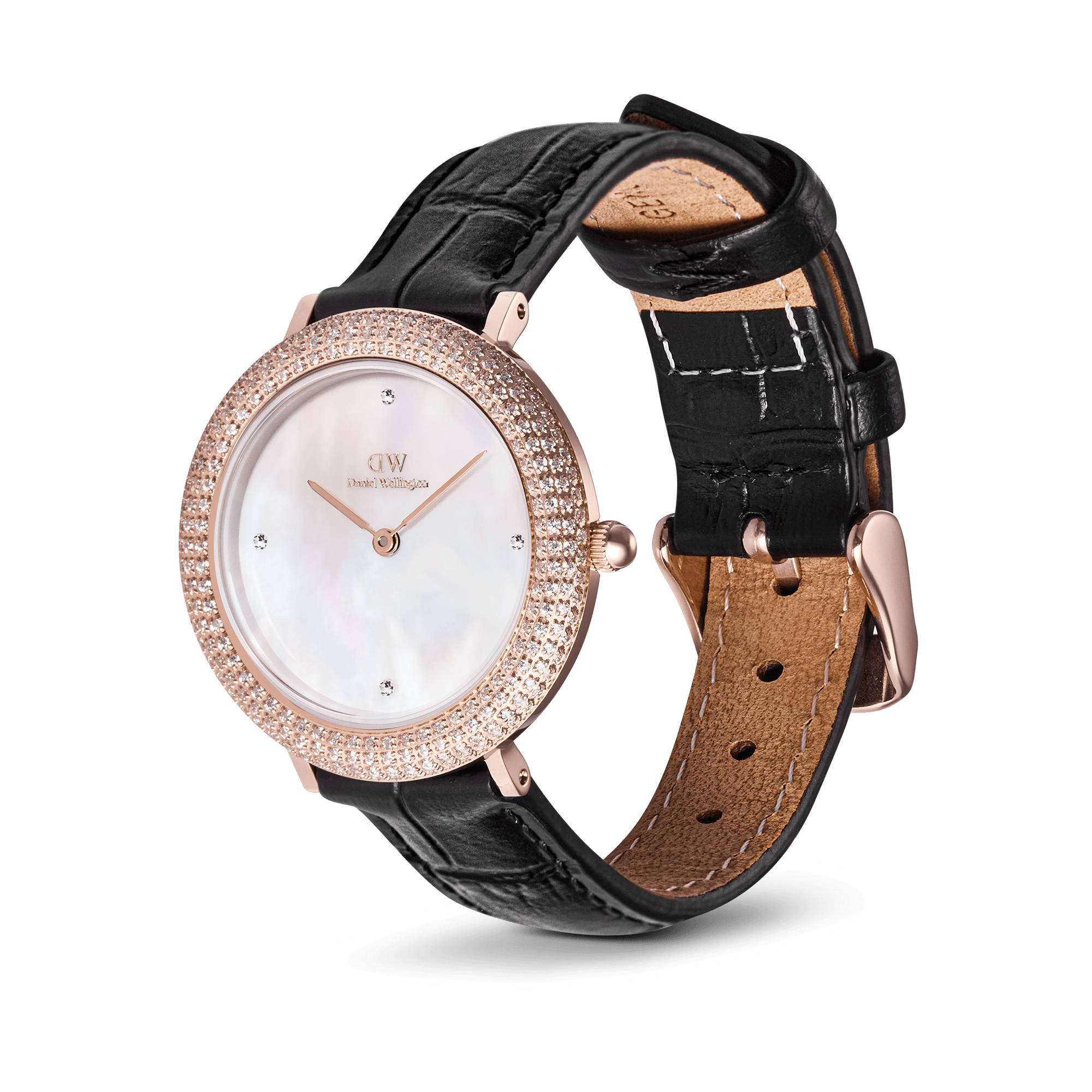 Daniel Wellington Crystalline Bezel Black Croc Rose Gold Watch