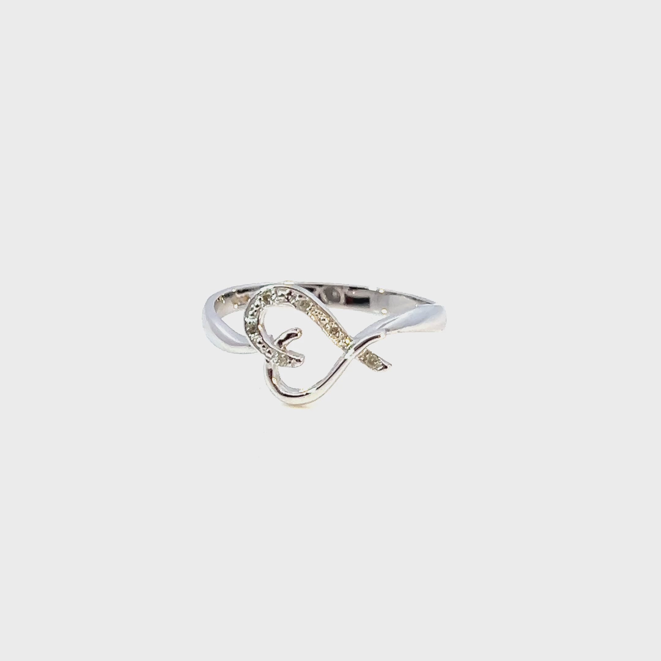 9ct White Gold Diamond Love Heart Ring