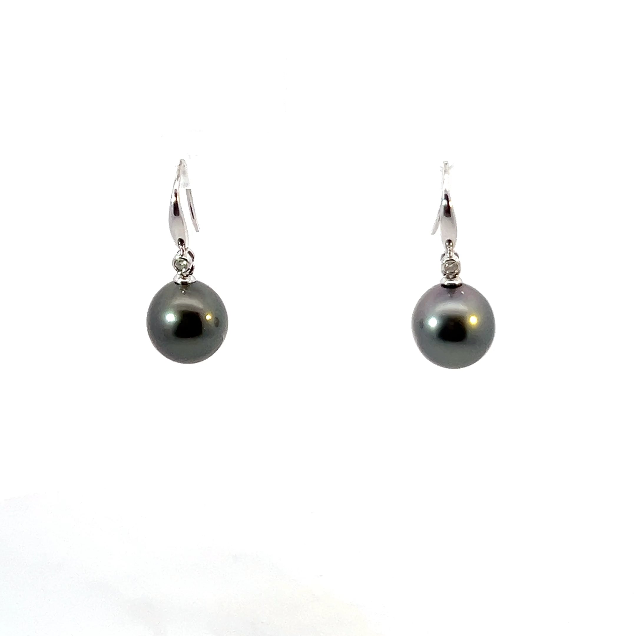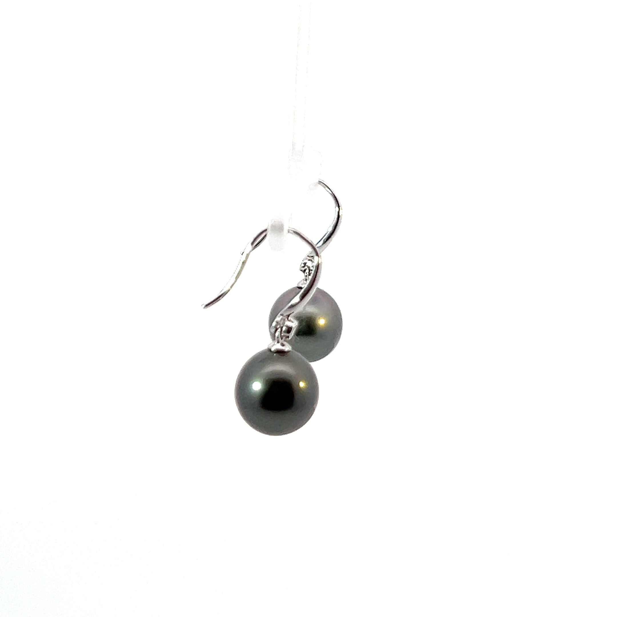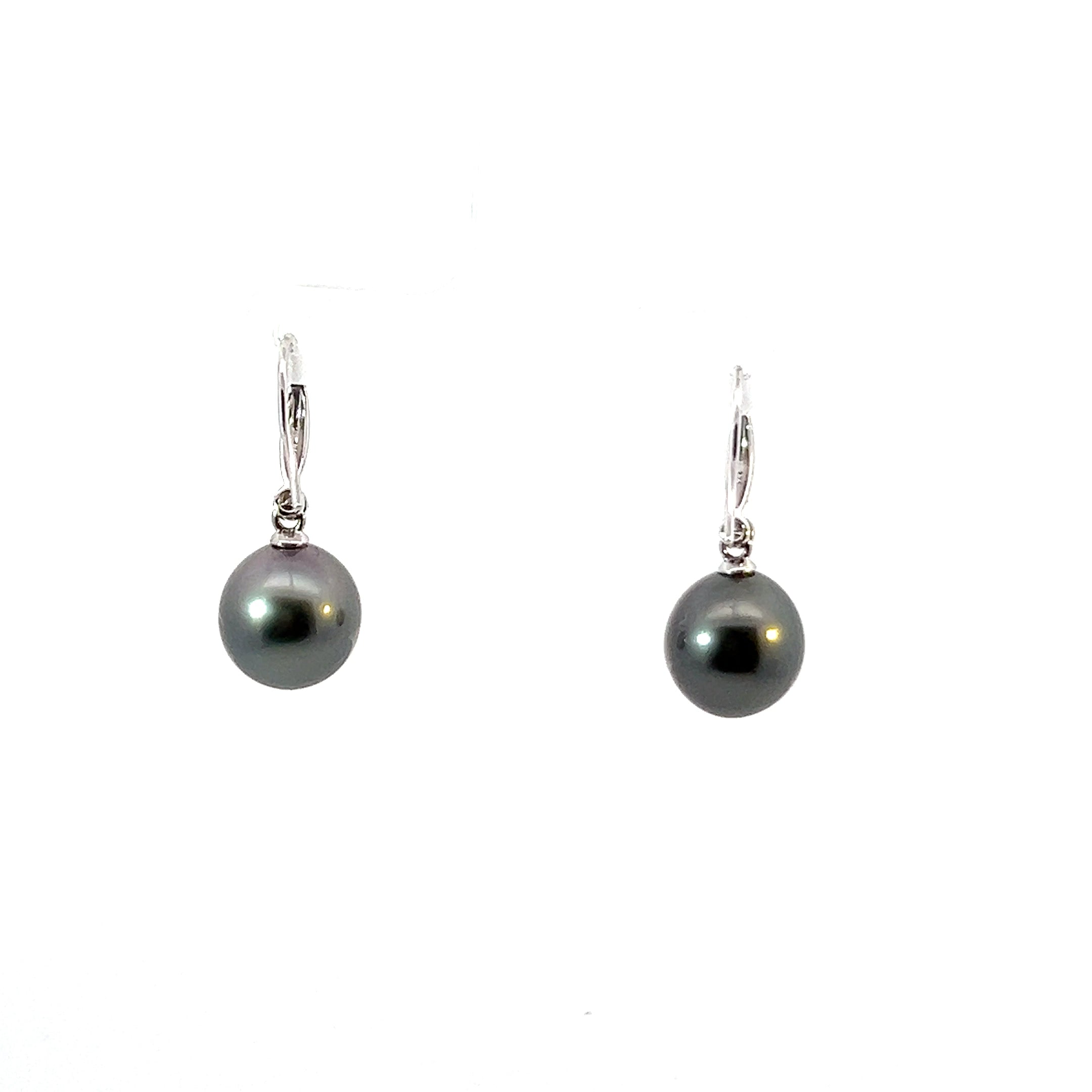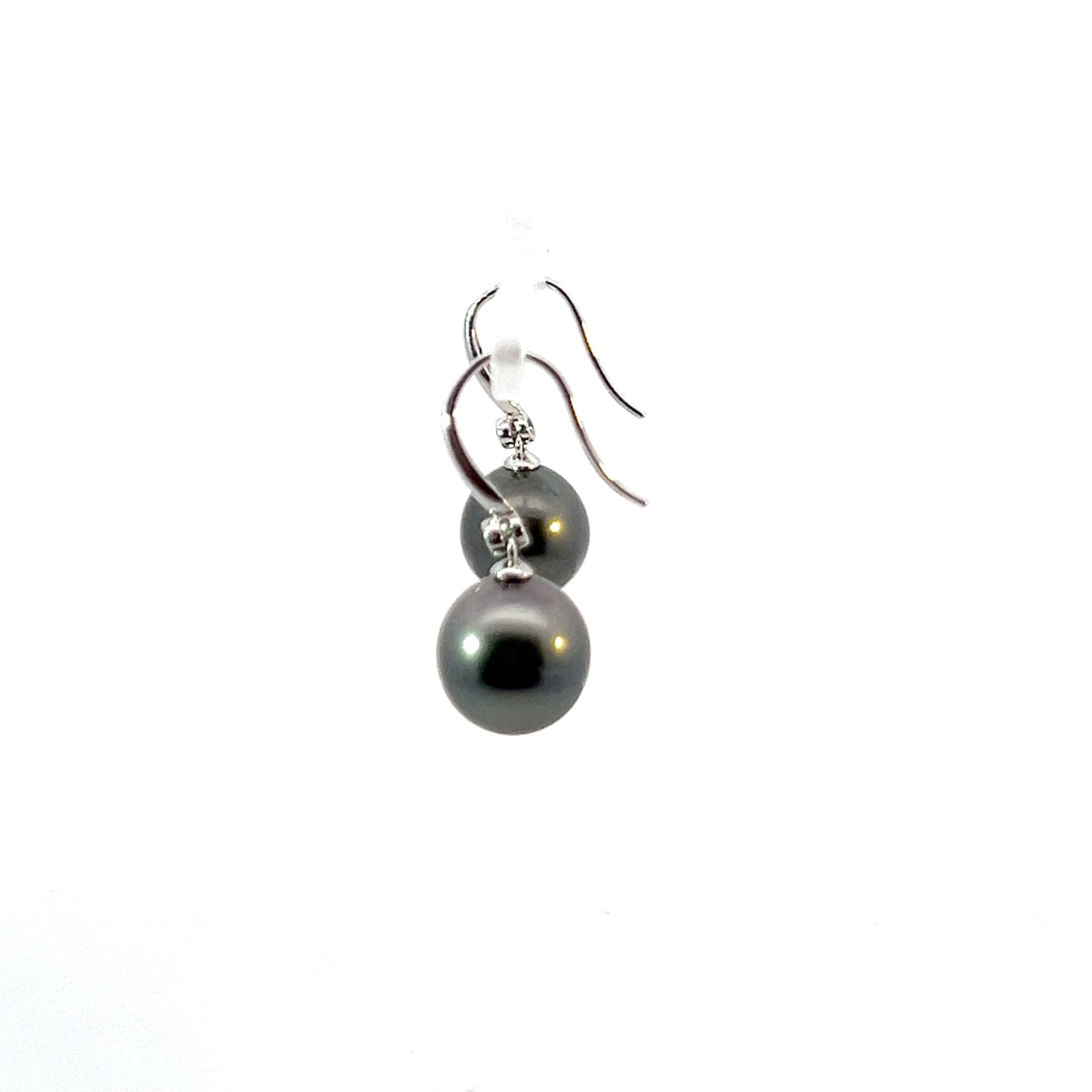 9ct White Gold 11mm Tahitian Pearl Hook Earrings