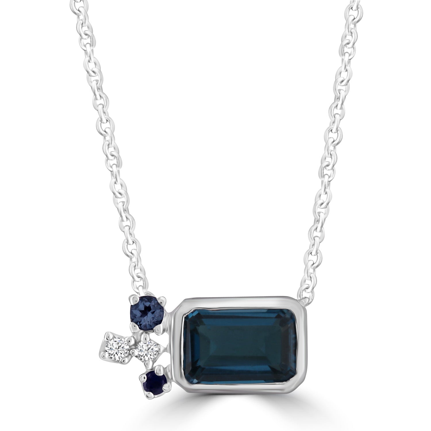 Diamond and Blue Topaz Necklace with 0.02ct Diamonds in 9K White Gold