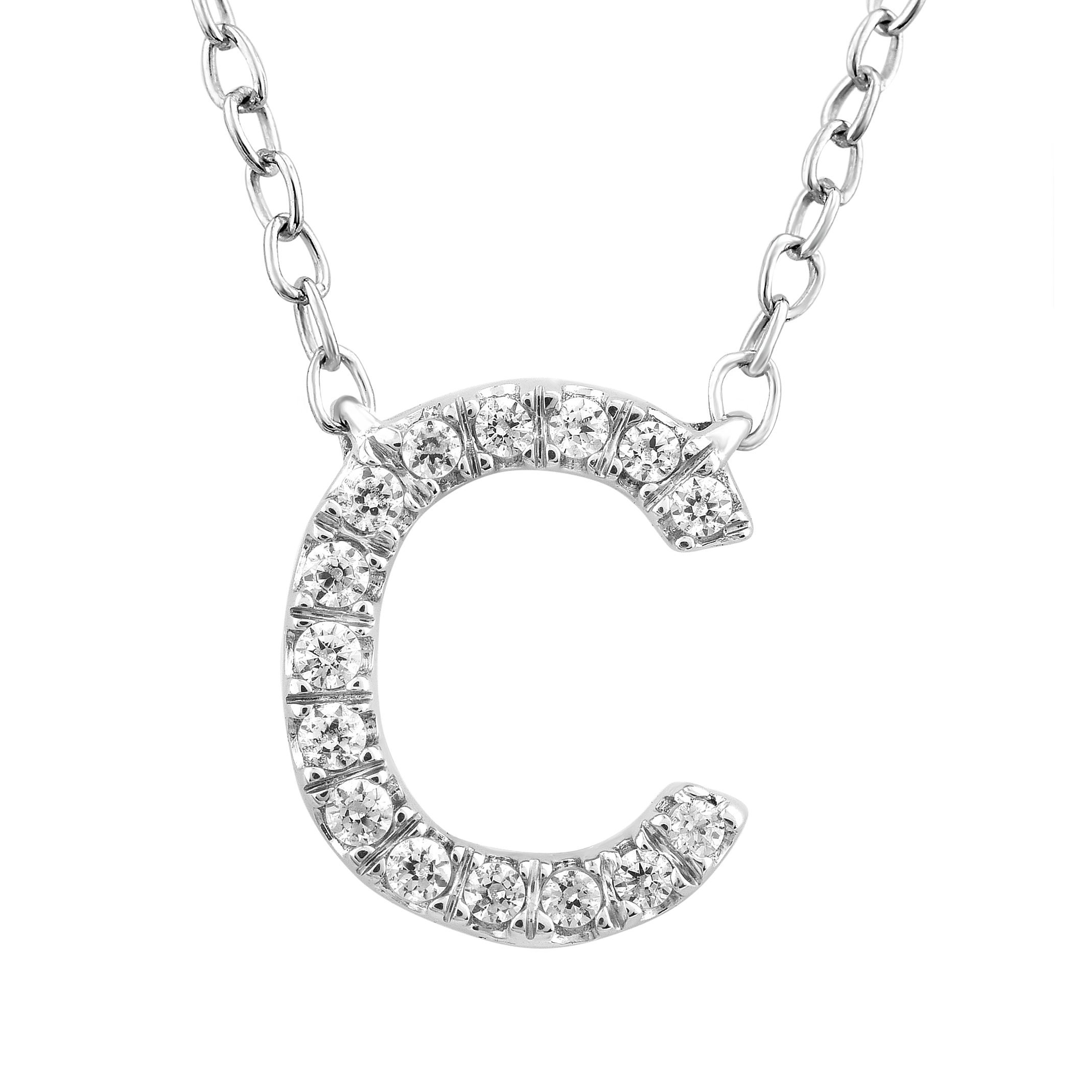 Name necklaces are the latest must-have fashion piece. Choose this Initial 'C' Necklace with 0.06ct Diamonds in 9K White Gold for the perfect look. Great for a gift or for yourself.