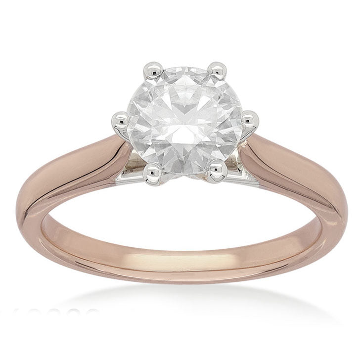9ct Rose & White Gold Moissanite Brilliant Solitaire.