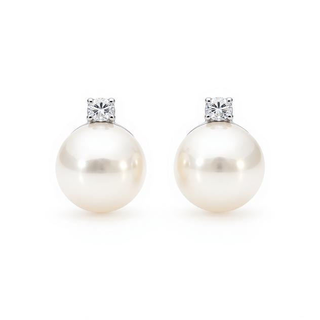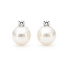 9ct White Gold Freshwater Pearl and Diamond Studs