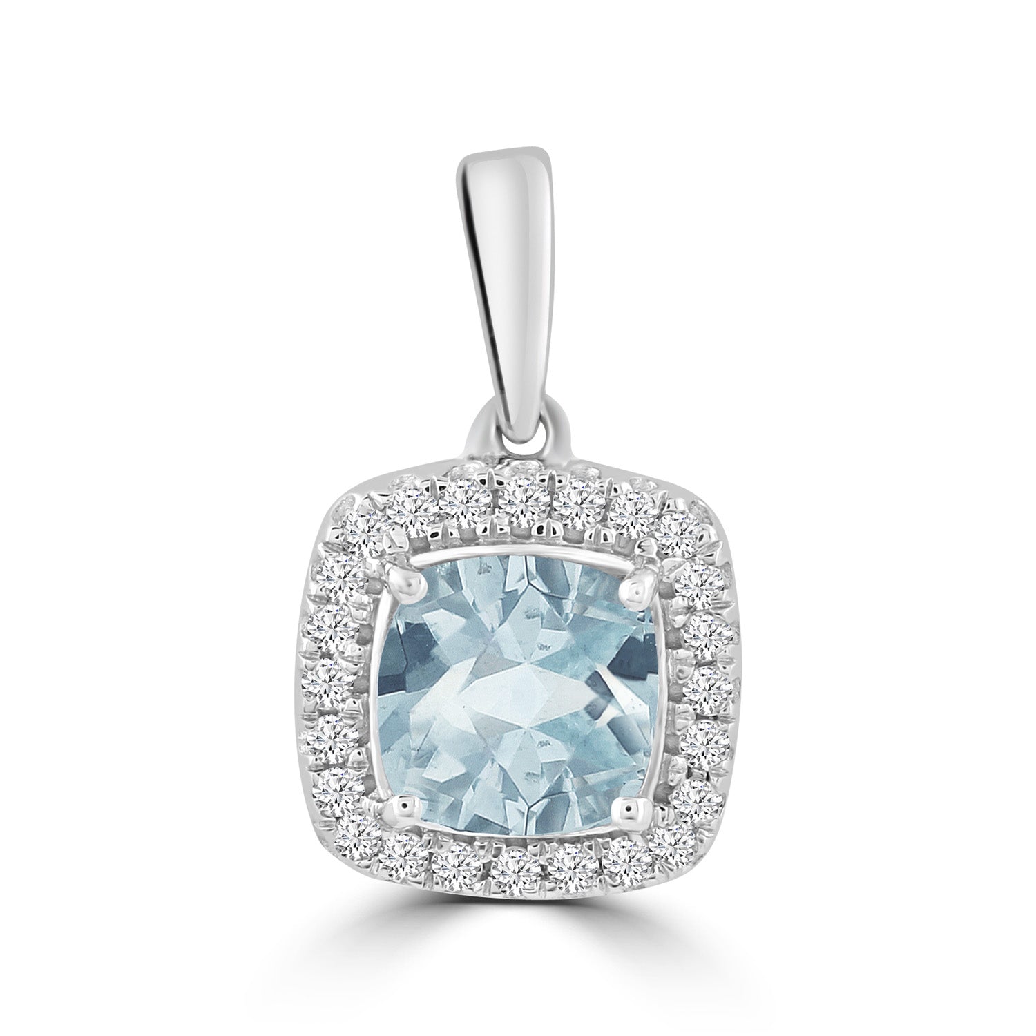 Dress up and add style to your favourite necklaces with this beautiful Aquamarine Pendant with 25 diamonds, a total diamond weight of 0.08 carats in 9K White gold.