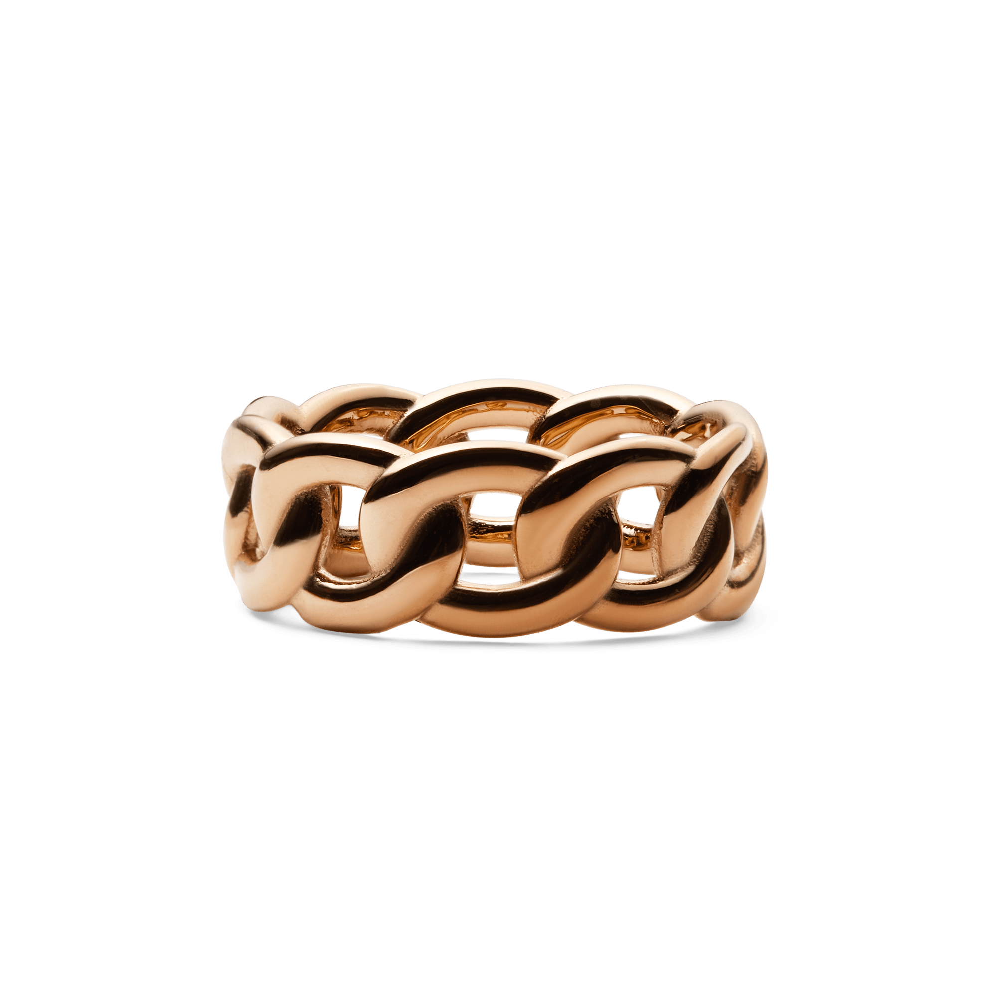 This chunky chain ring is an everyday classic that elevates any look. A jewellery must-have with bespoke dimensions, each rounded rose gold loop was designed with a custom width, length, and diameter of the threads. Crafted as one single piece, the ring has the appearance of a fluid chain, but holds its shape on your finger—beautiful to wear with other accessories, but speaks for itself as a stand-alone piece.