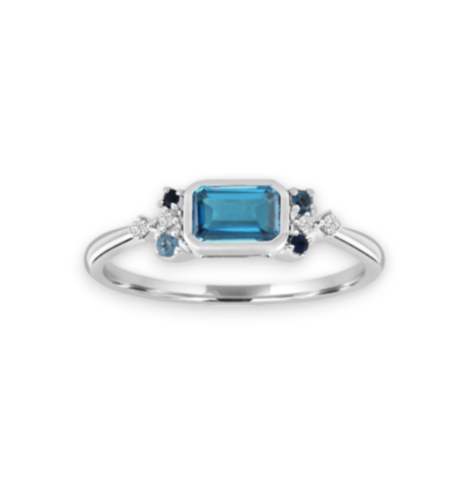 Diamond and Blue Topaz Ring with 0.05ct Diamonds in 9K White Gold