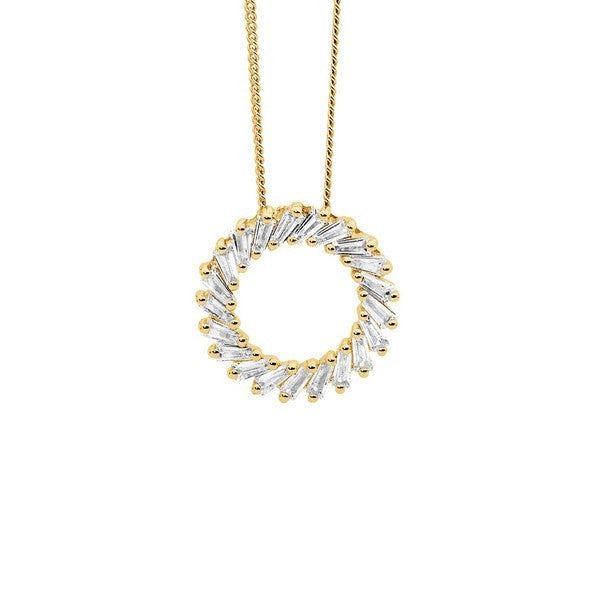 Sterling Silver Gold Plated CZ Baguette Circle Pendant on Chain