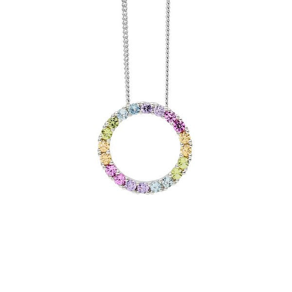 Sterling Silver Multi Colour Pastel CZ Circle Pendant & Chain