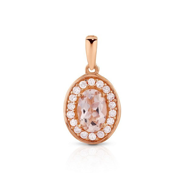 9ct RG Oval Shape Morganite Halo Pendant TDW 0.10ct