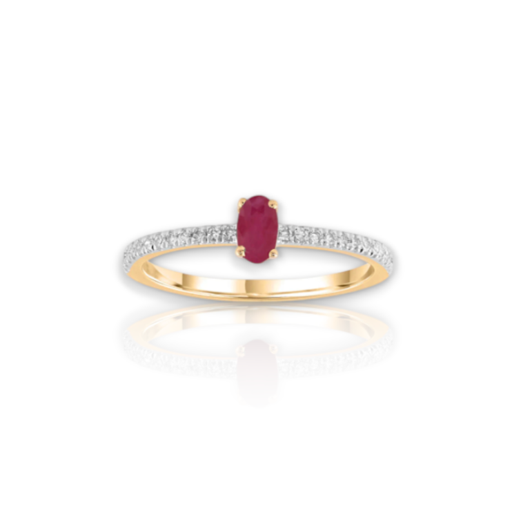Ruby Ring with 0.12ct Diamond in 9K Yellow Gold