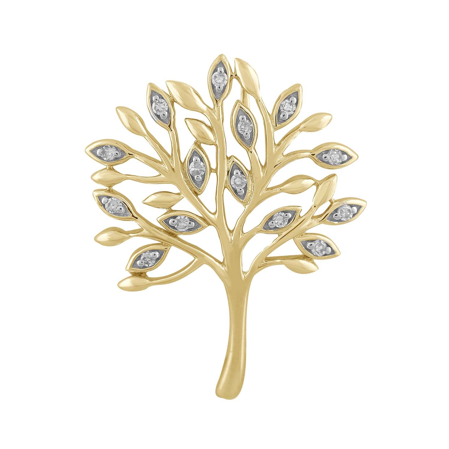 Dress up your favourite necklace with this beautiful tree pendant with 14 diamonds, a total diamond weight of 0.05 carats in 9k yellow gold.