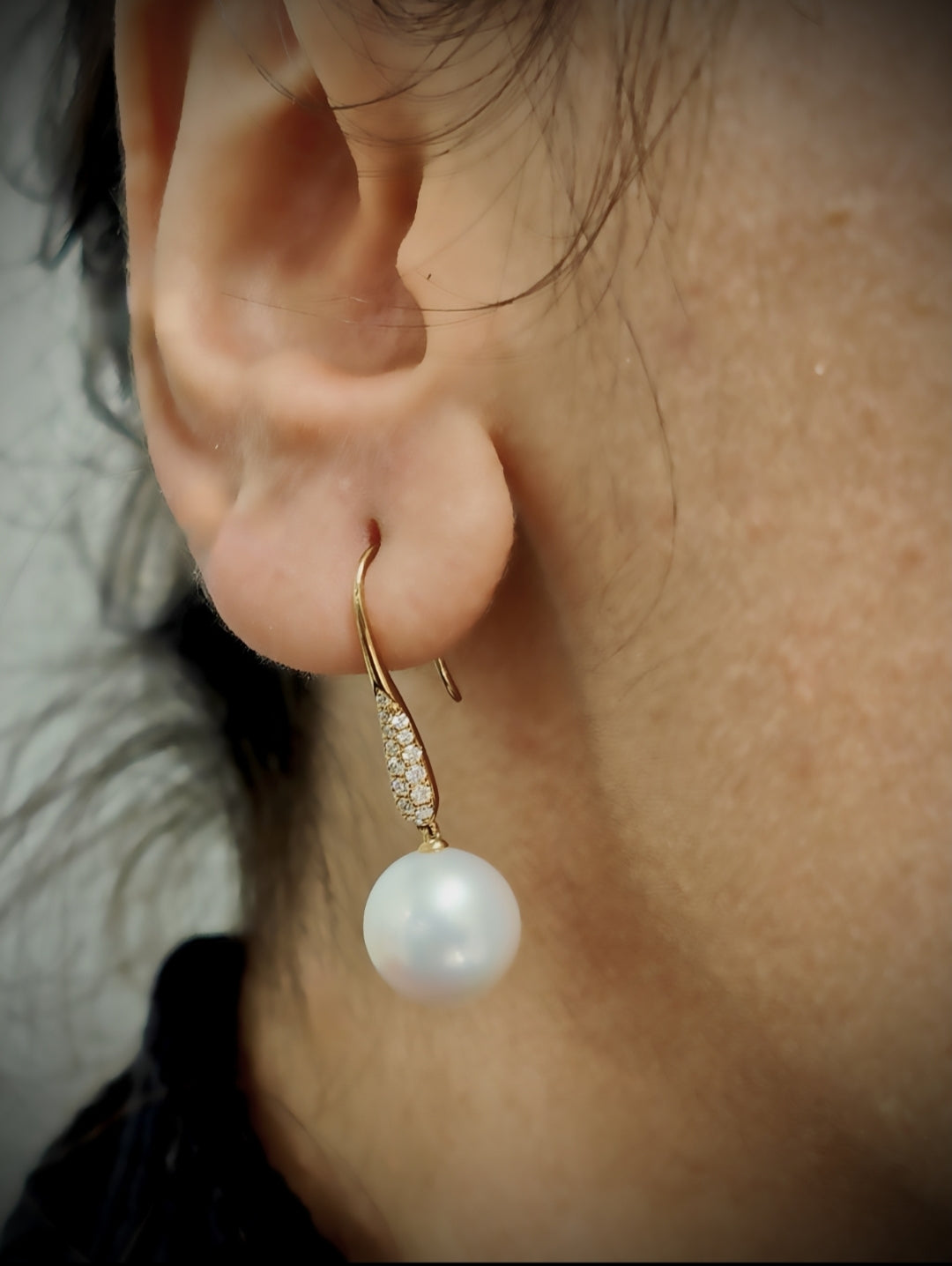 9ct Yellow Gold Diamond Edison Pearl Hook Earrings